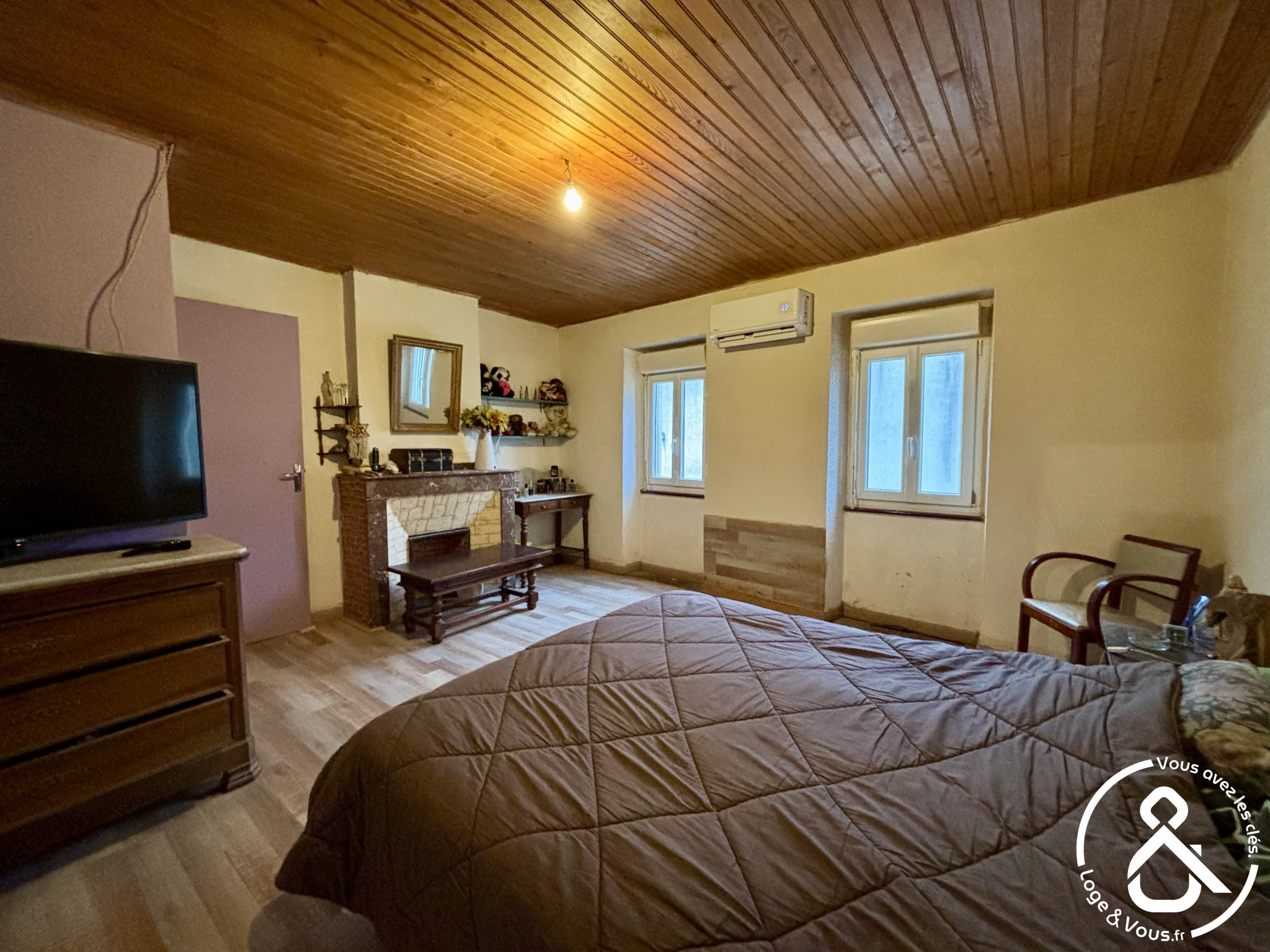 À l'étage, vous trouverez deux vastes chambres ainsi qu'un bureau, parfait pour un espace de travail ou une chambre d'appoint. Une salle d'eau et un WC complètent ce niveau.