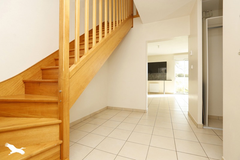 Au calme dans un cadre verdoyant, charmante maison récente comprenant : entrée, cellier, espace de vie avec cuisine.