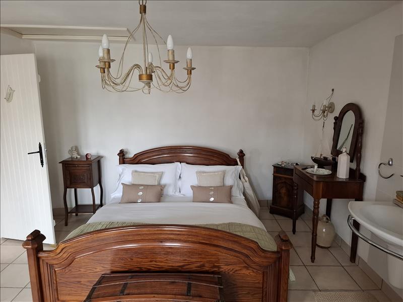 À l'étage : palier, chambre lumineuse avec douche et WC privatifs.