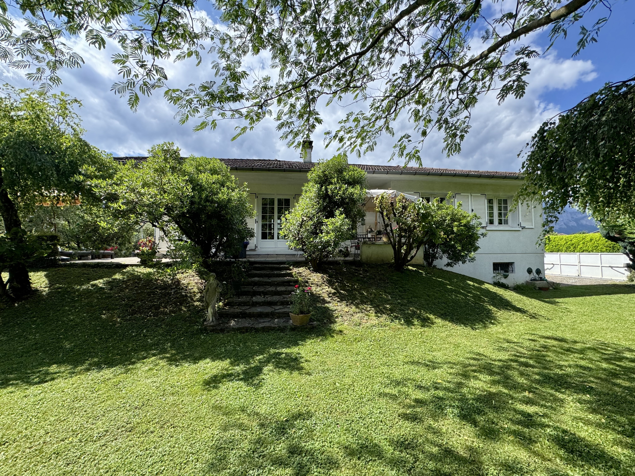 COUP DE COEUR ! Nouveauté à la vente sur Villard-Bonnot (38190), notre agence Alpes Rhône Immobilier vous propose aujourd'hui cette magnifique maison d'architecte de plain pied de 104 m2 habitables, avec sous-sol de 116 m2 et le tout édifié sur un terrain plat de 884 m2 entièrement clos offrant un cadre de vie paisible et sans vis à vis.