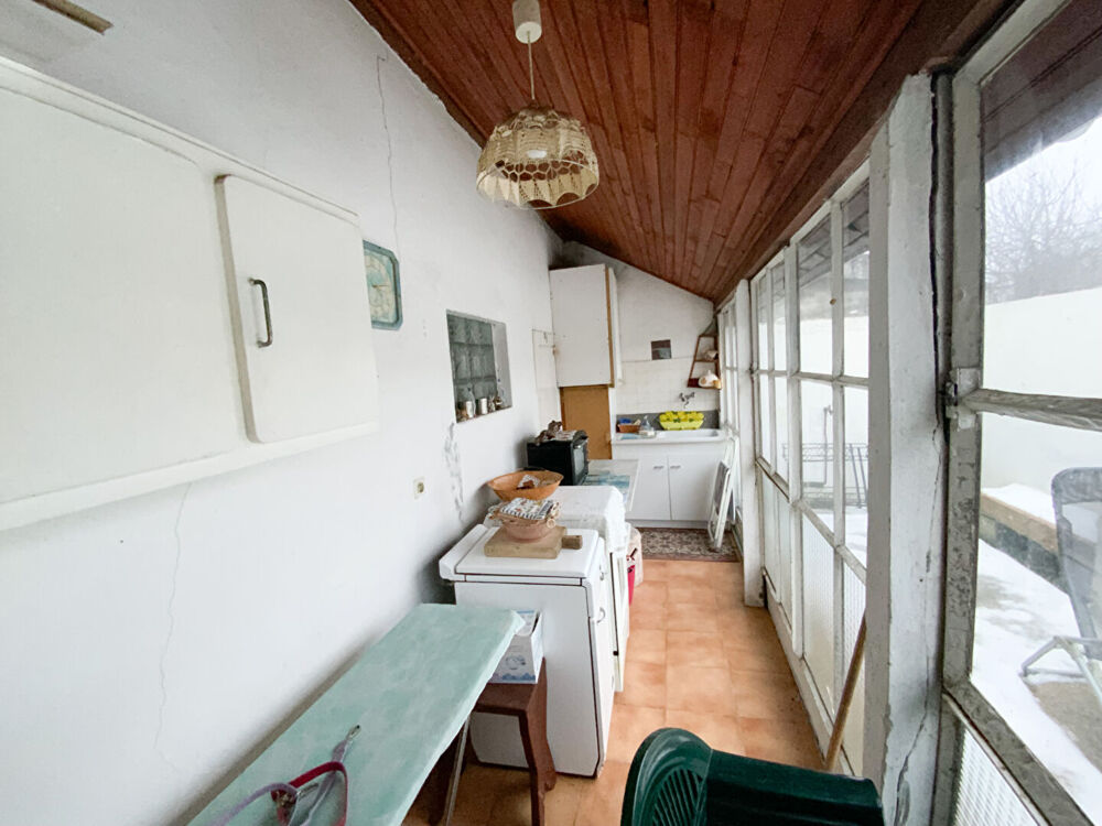 Maison de plain pied comprenant : séjour, cuisine aménagée, une chambre, salle d'eau avec w.c., véranda sur l'arrière donnant sur le jardin . Garage avec porte motorisée et cellier attenant. Terrain clos de 336 m². Chauffage central gaz. Bonne couverture. A visiter.