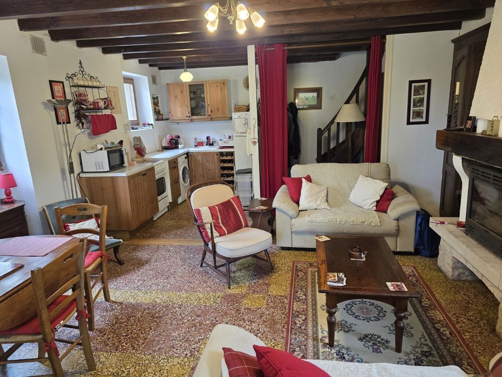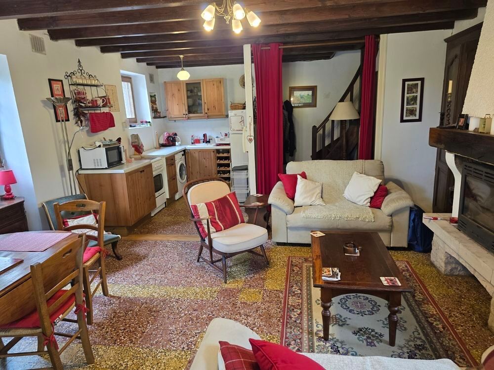 Environs St Gengoux Le National. Charmante petite maison de village avec jardin. Habitation d'environ 60m² répartie sur un rez-de-chaussée et un étage avec grenier au-dessus. Séjour avec cheminée insert et coin cuisine, petit dégagement avec toilettes et escaliers desservant l'étage composé de 2 chambres et une salle d'eau avec toilettes (broyeur). Grenier. Chauffage électrique. Petit garage et remise. Ensemble sur 363m² avec vue. Commerces à peu de distance. Idéal pied à terre ou premier achat.DPE/G - GES/C du 15/05/25. Estimations coûts annuels d'énergie entre 2 610 € et 3 570 €.
