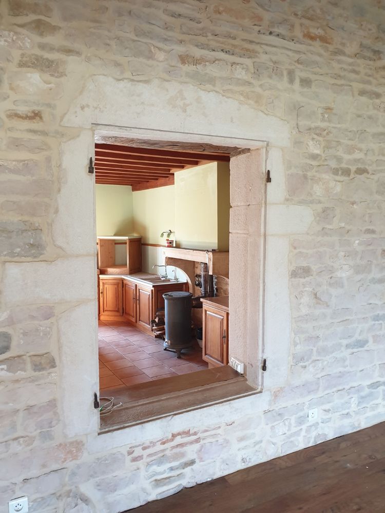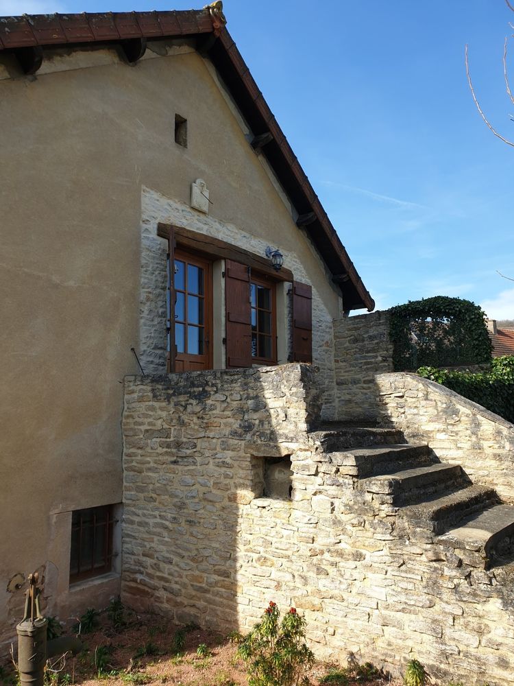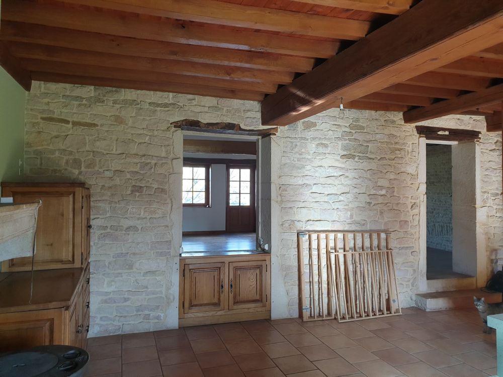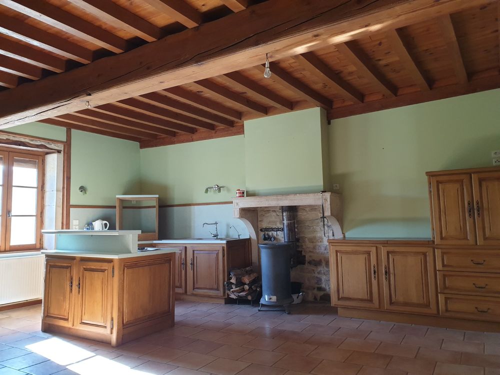 Secteur Chapaize/Tournus. Situation très agréable et calme en bordure d'un village typique de la région. Maison ancienne rénovée avec dépendances, jardin et vue sur la campagne entre bocage et vignes. Habitation d'environ 125 m² desservie par un escalier intérieur en pierre, et composée d'une grande cuisine (28m²) avec poêle à bois, un grand séjour (49m²), 2 chambres dont une grande mansardée avec poutres (52m²/possibilité de diviser et transformer), et une salle d'eau/wc. Chauffage central fuel. Possibilité d'extension et aménagement de la grange attenante avec étage (dalle béton au-dessus de la grange avec trémie existante). Grande chaufferie au RC avec fenêtre et porte-fenêtre, grand local fuel et caves et grande remise.Terrasse attenante au séjour donnant sur le jardin et la vue et seconde terrasse abritée sur le jardin avec électricité. Maison raccordée à la fibre.