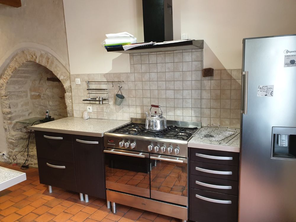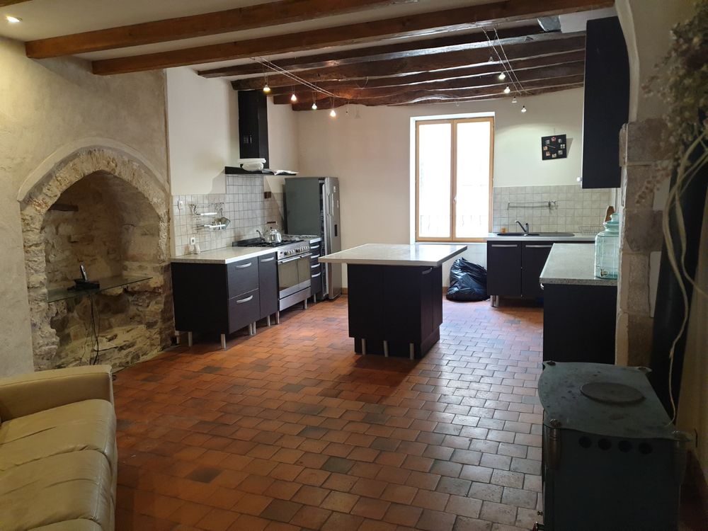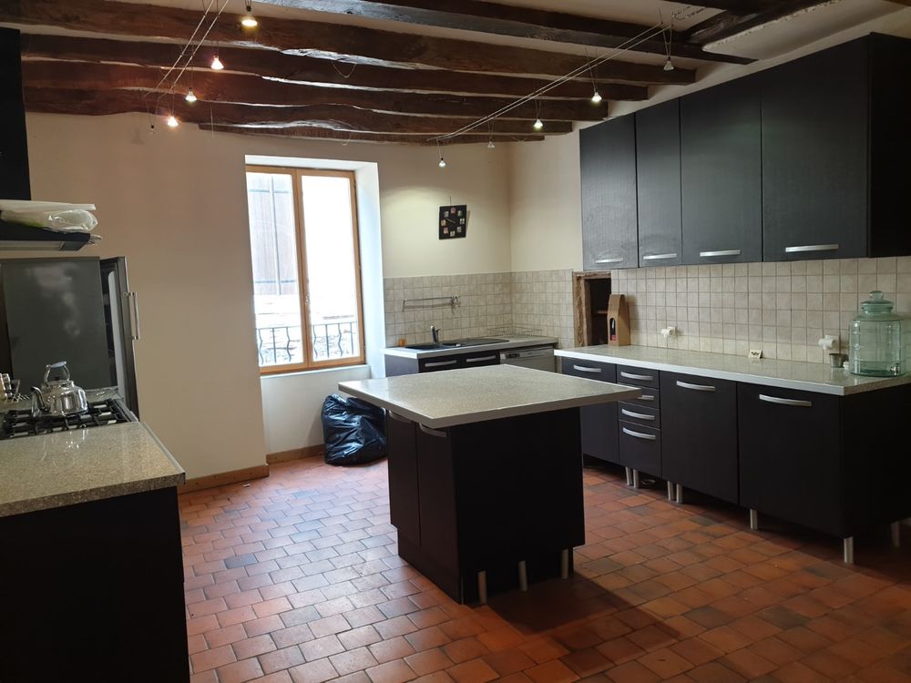 Cœur de Bourg historique et touristique avec commerces. Ancienne Maison d'hôtes avec terrasse. Beaux volumes pour cette ancienne maison de ville avec une surface habitable d'environ 150m² répartie sur 4 niveaux avec buanderie et garage en rez-de-rue. Entrée sur grand pièce principale d'environ 50m² avec bel espace cuisine aménagée ouverte, poêle à bois et accès terrasse. Etage supérieur avec petit couloir distribuant 2 chambres avec chacune sa salle de bains/wc. Le 3e étage se compose de deux chambres supplémentaires avec une salle d'eau/wc. Et 4e étage desservant une pièce mansardée. Un escalier depuis le séjour permet d'accéder à la buanderie, un wc et le garage, ces derniers accessibles également depuis la rue. Petit bûcher sous la terrasse. Chauffage électrique et poêle à bois. Très agréable maison bien située au cœur d'une ancienne cité Médiévale, à 20mn de Cluny et de Tournus (accès autoroute/Gare) et 30mn d'une première Gare TGV. Idéale grande famille ou maison d'hôtes. Possibilité d'un jardin détaché (1 515m²) à environ 2km et situé en pleine nature.* Prix net, hors frais notarié, d'enregistrement et de publicité foncière.