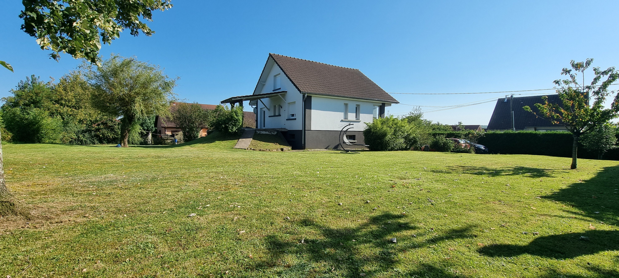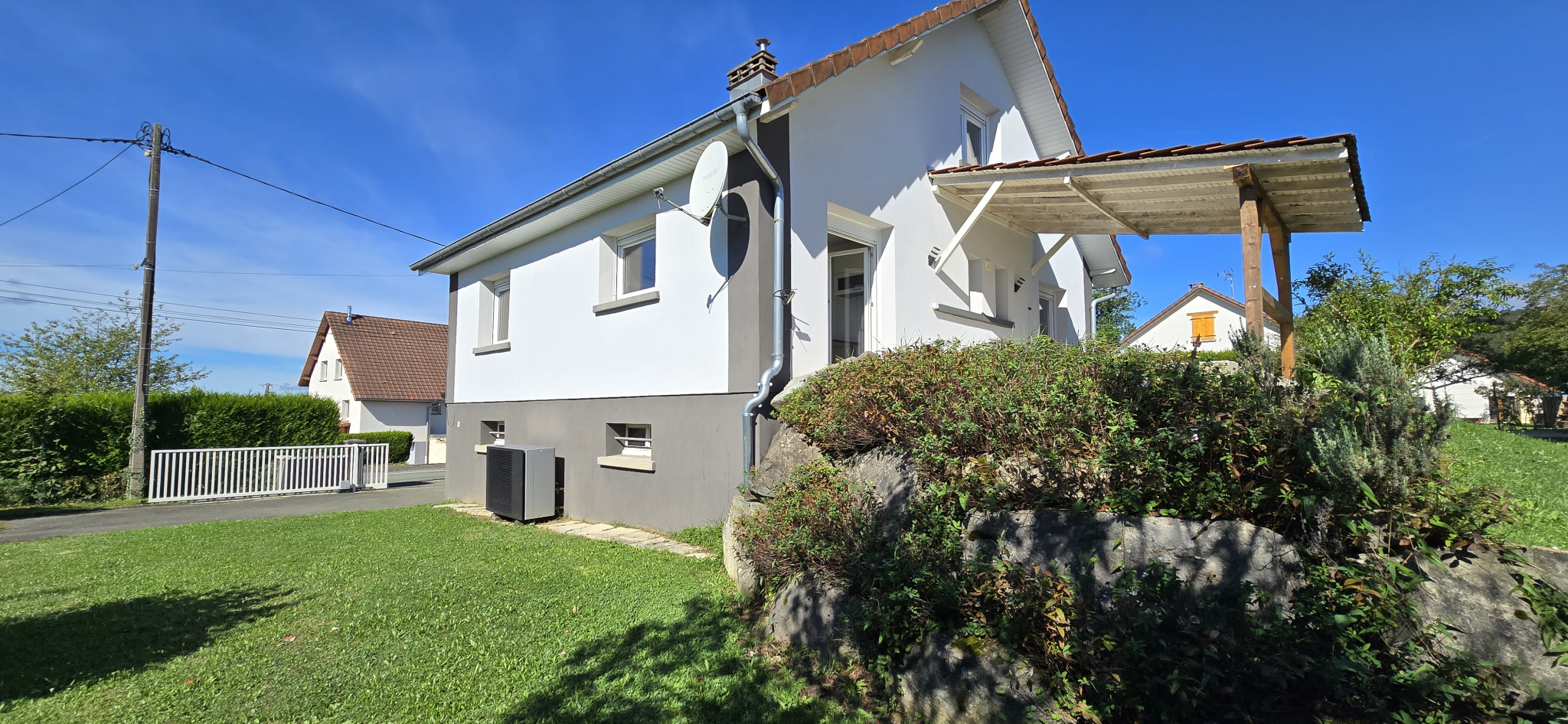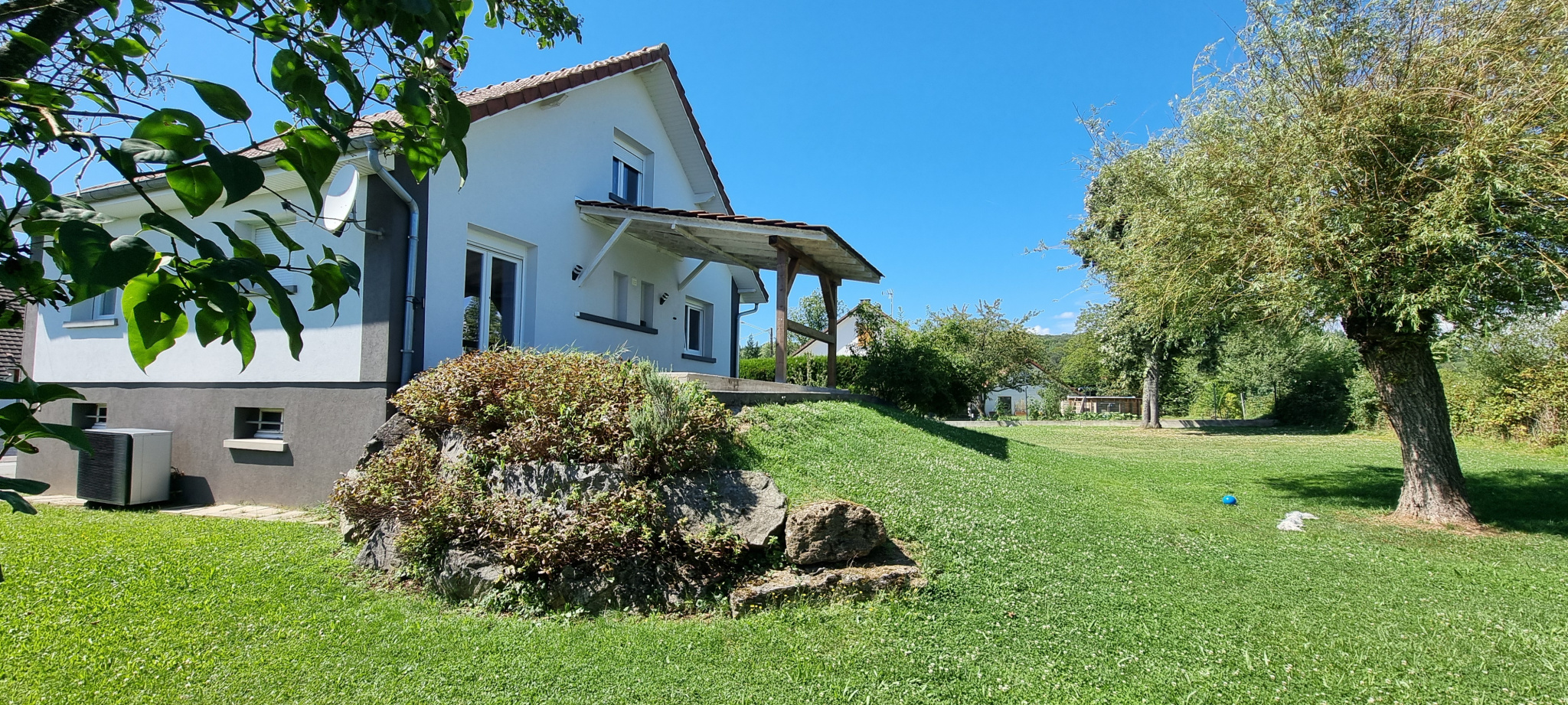 A l'extérieur, joli terrain entièrement clos (portail) et arboré, terrasse.