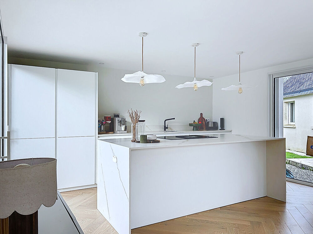 Rare sur le marché ! Imaginez une demeure où le temps semble s'être arrêté pour mieux renaître, entièrement rénovée avec une élégance raffinée et des matériaux nobles qui respirent la qualité. Nichée à Briec, bercée par la douceur bretonne, elle offre tous les plaisirs de la vie à portée de main : commerces animés, écoles et collèges, médecins, pharmacies, clubs sportifs et piscine... Vous découvrirez une grande entrée en cathédrale desservant le coté nuit qui comprend une salle de bain, une chambre et une suite parentale de 24 m² avec dressing et salle de bain (+douche) avec double vasque. De l'autre coté le couloir dessert une seconde entrée ainsi qu'une buanderie et une salle de jeux pouvant aisément devenir une chambre de plus d'environ 13m². Au coeur de tout, une pièce de vie de 70 m² baignée de lumière : cuisine moderne ouverte sur le séjour pour concocter des délices en famille , salon chaleureux où danse la flamme d'un poêle à bois, comme un feu de cheminée d'antan. D'ici, une ouverture généreuse sur la terrasse appelle les beaux jours, pour des moments précieux en famille ou entre amis, face à un jardin immense de près de 9 000 m², un océan de verdure où l'âme se perd. A l'étage un dégagement vous mène sur deux chambres. Pour vos besoins de stockage, la propriété possède un hangar de plus de 580 m² ainsi que deux bâtisses en pierres offrant un potentiel que votre imagination saura mettre en valeur. L'assainissement refait récemment est bien entendu aux normes. L'accès à la RN 165 est à moins de 5 km et Quimper à 13 minutes. Gérald GONTIER agent commercial Nestenn EI - RSAC QUIMPER 817476047 Les informations sur les risques auxquels ce bien est exposé sont disponibles sur le site Géorisques : www.georisques.gouv.fr (5.00 % honoraires TTC à la charge de l'acquéreur.) Gérald GONTIER (EI) Agent Commercial - Numéro RSAC : 817 476 047 - Quimper.