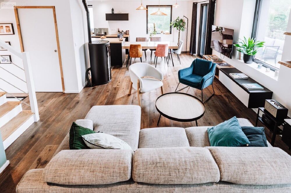 - Un spacieux salon-séjour baigné de lumière, agrémenté d''un poêle à granulés moderne.