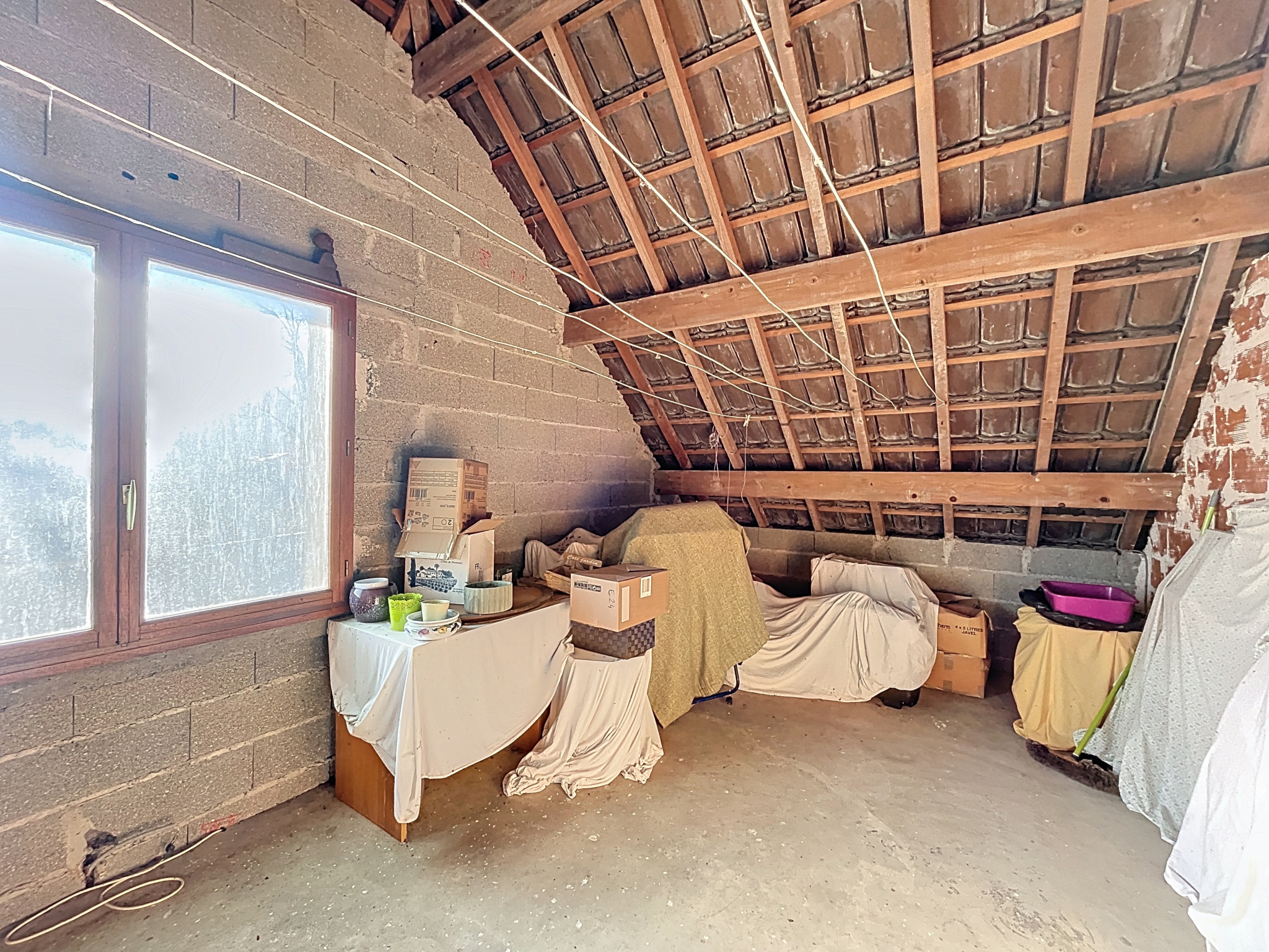 - Chambre 4 (9,28m2) : moquette, convecteur, vélux ;