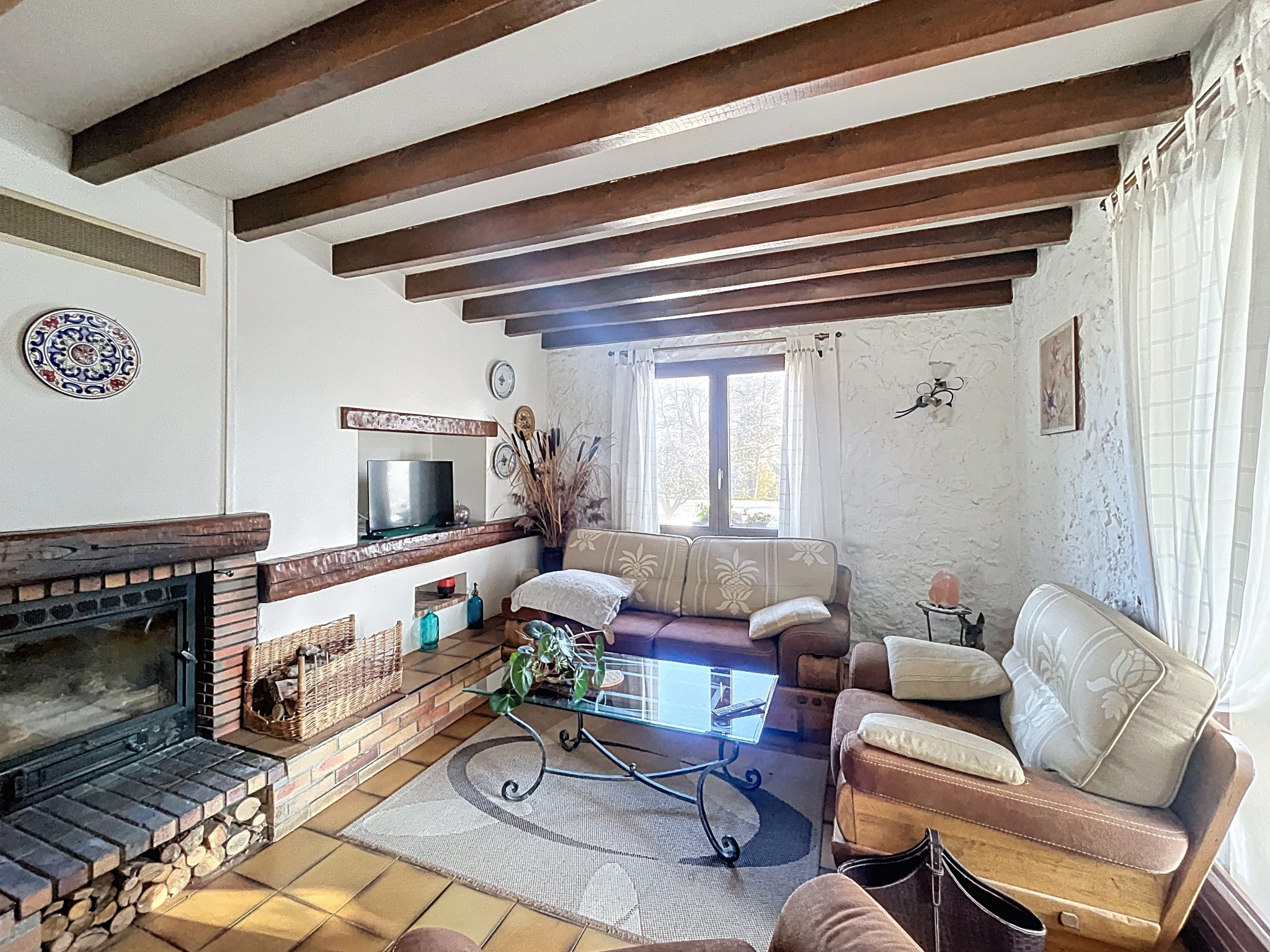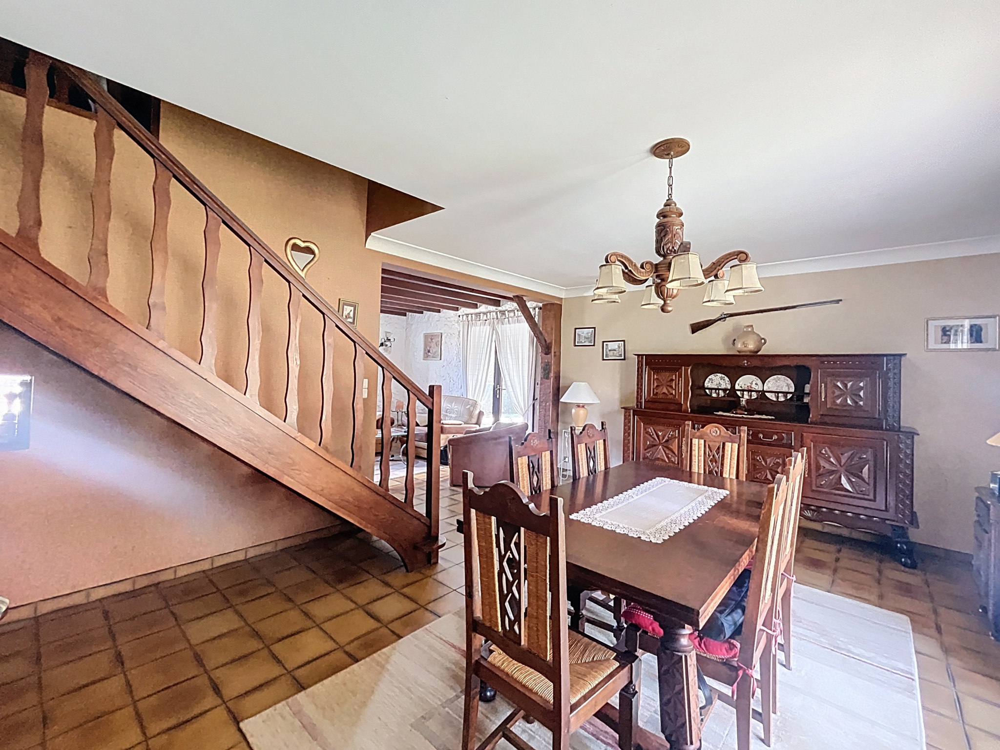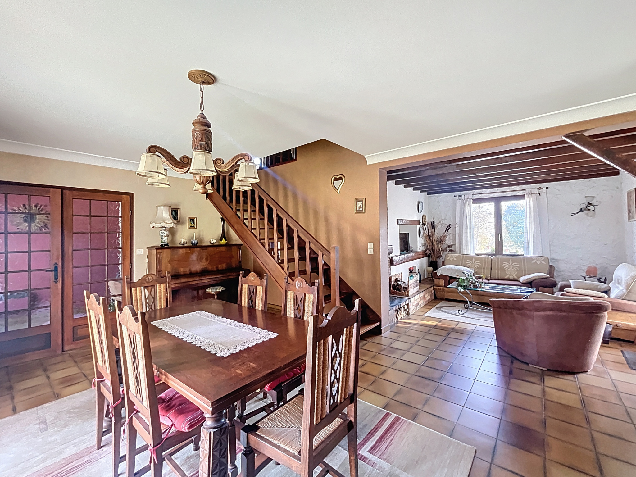 - Séjour (24,31m2) : carrelage, insert bois, convecteur, 2 portes-fenêtres, fenêtre ;