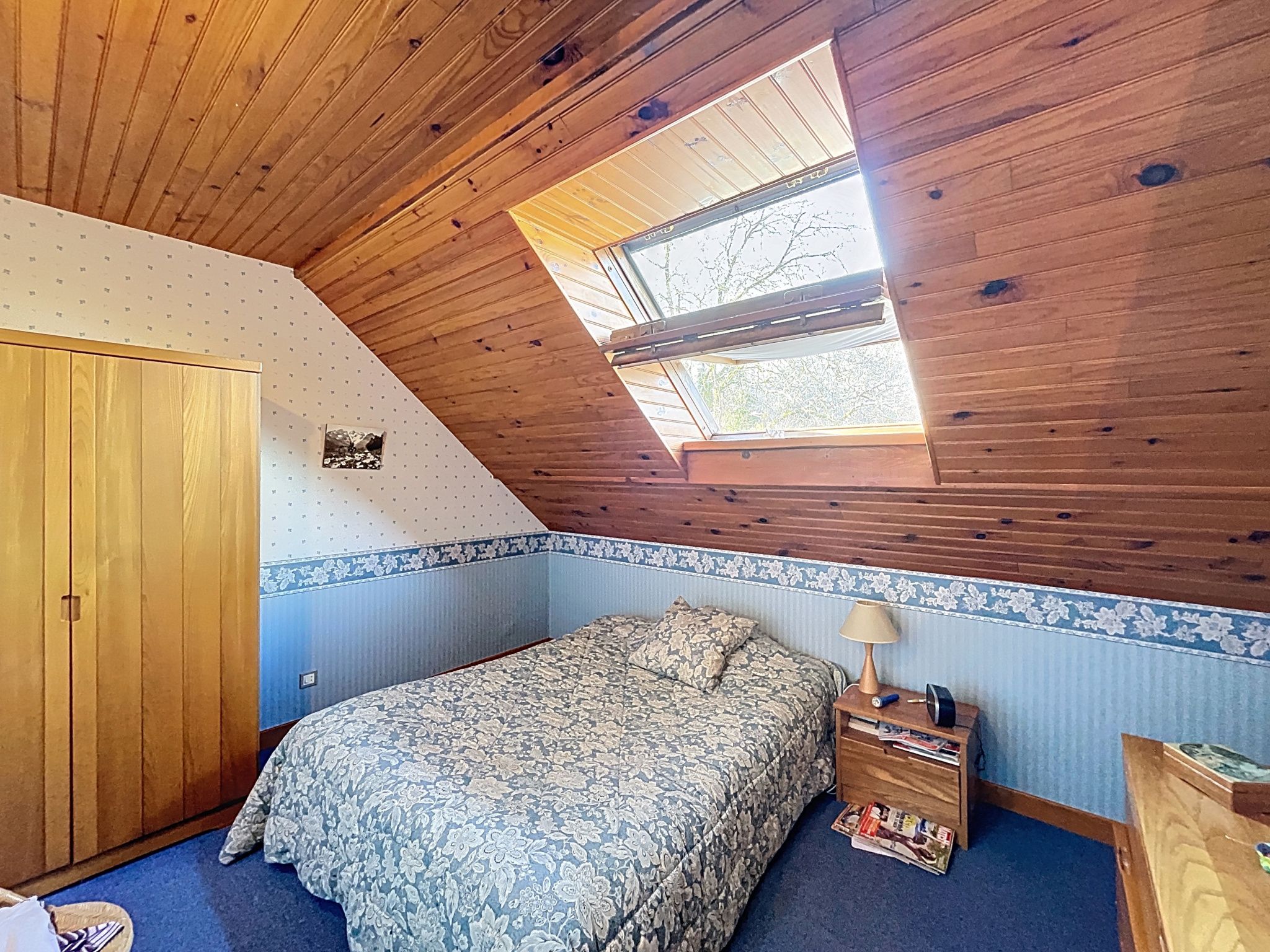 - Chambre 2 (9m2hab/12,35m2 au sol) : moquette, convecteur, velux ;