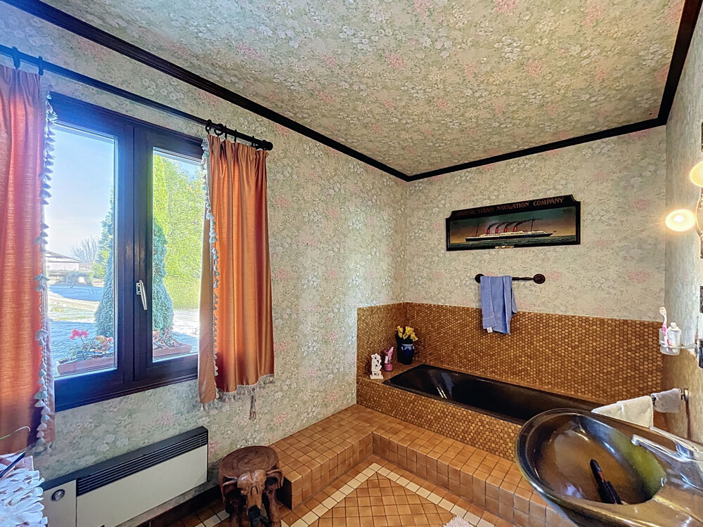 - Salle de bains (7,25m2) : carrelage, lavabo sur colonne, baignoire, convecteur, fenêtre.
