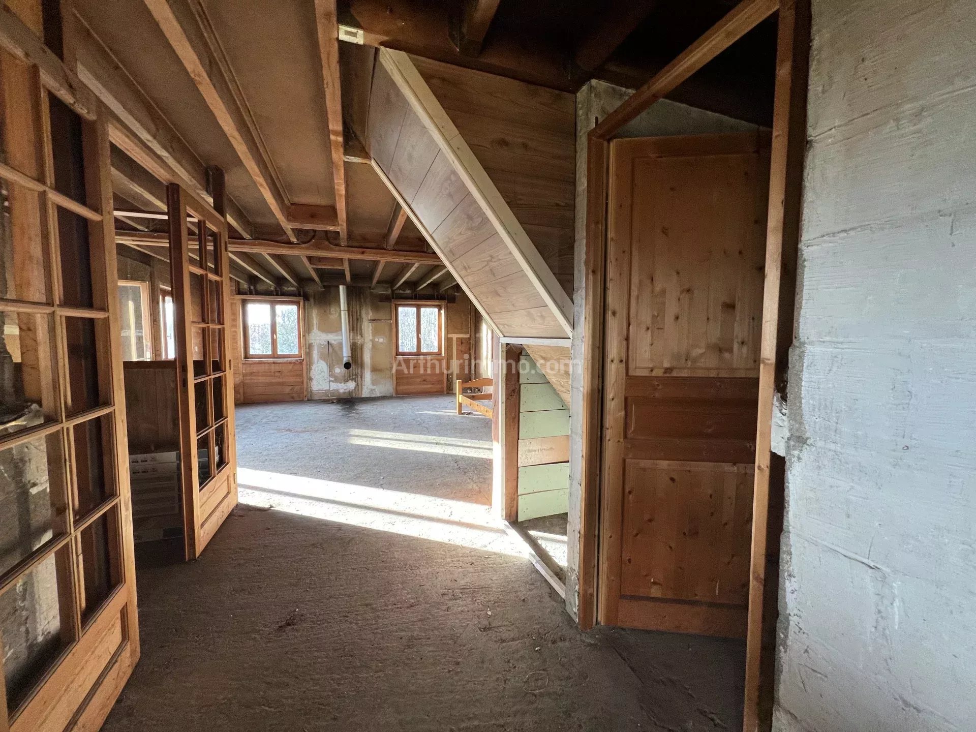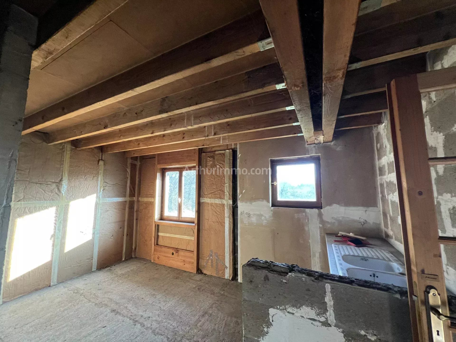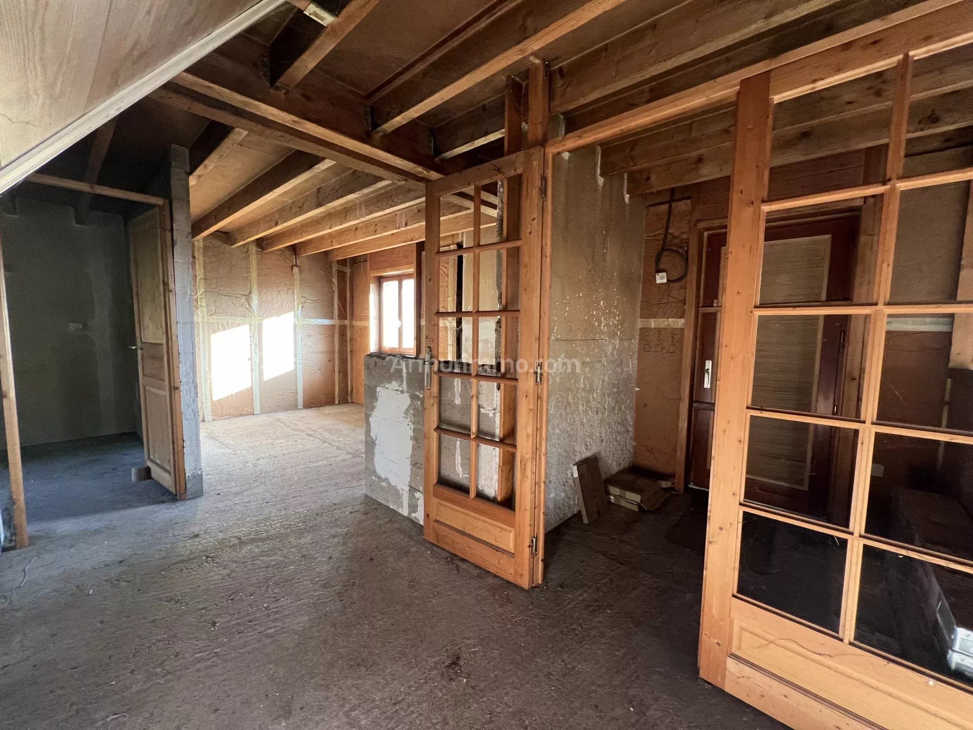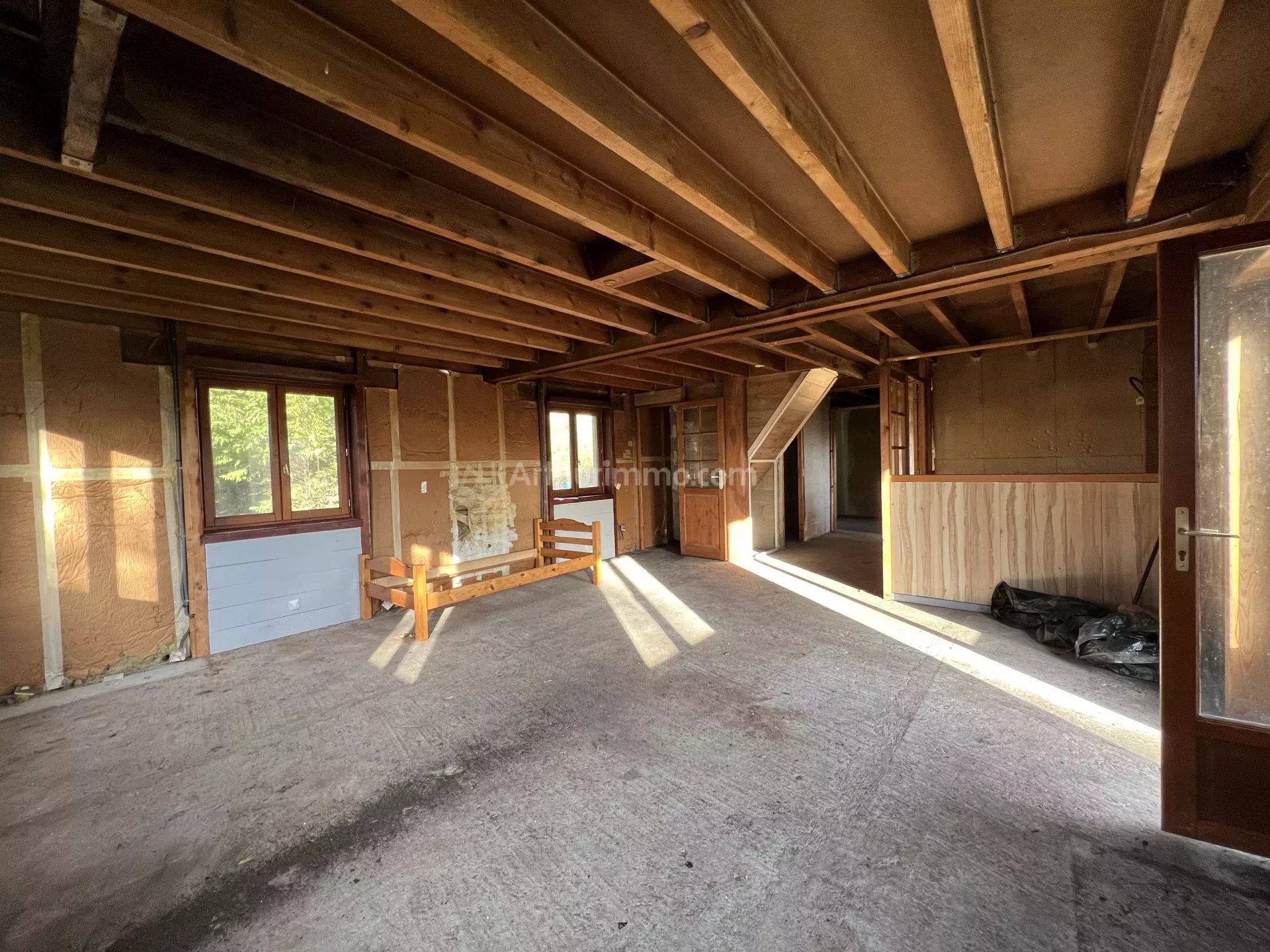 La structure est faite (mur, toiture), mais tout l'intérieur est à faire: isolation, électricité, distribution des pièces, chauffage.
