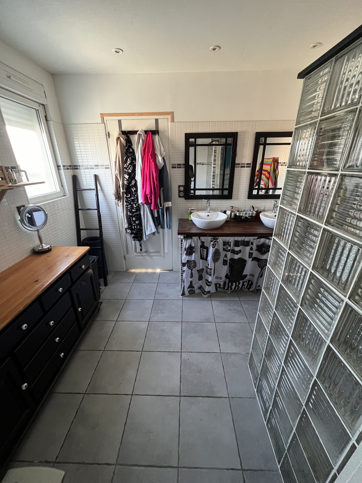 Au rdc: belle pièce à vivre de 74 m2 avec cuisine aménagée et équipée ouverte sur salon/séjour , arrière cuisine, wc, une chambre, dressing, salle d'eau . couloir, une deuxième chambre avec dressing.