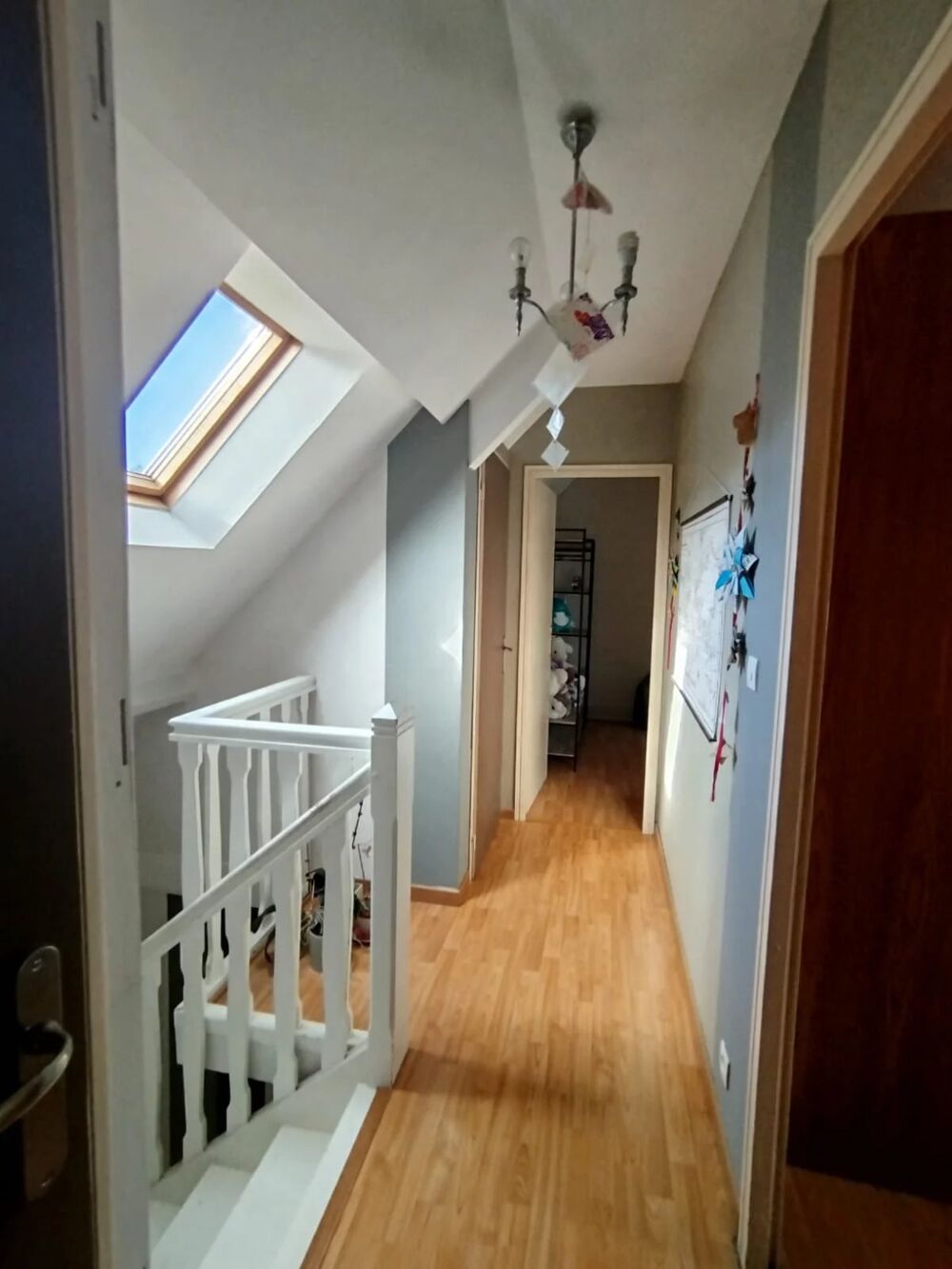 A l'étage, vous trouverez trois chambres sous rampants (11 m², 14 m² et 15 m²), une salle de bains et un WC indépendant.