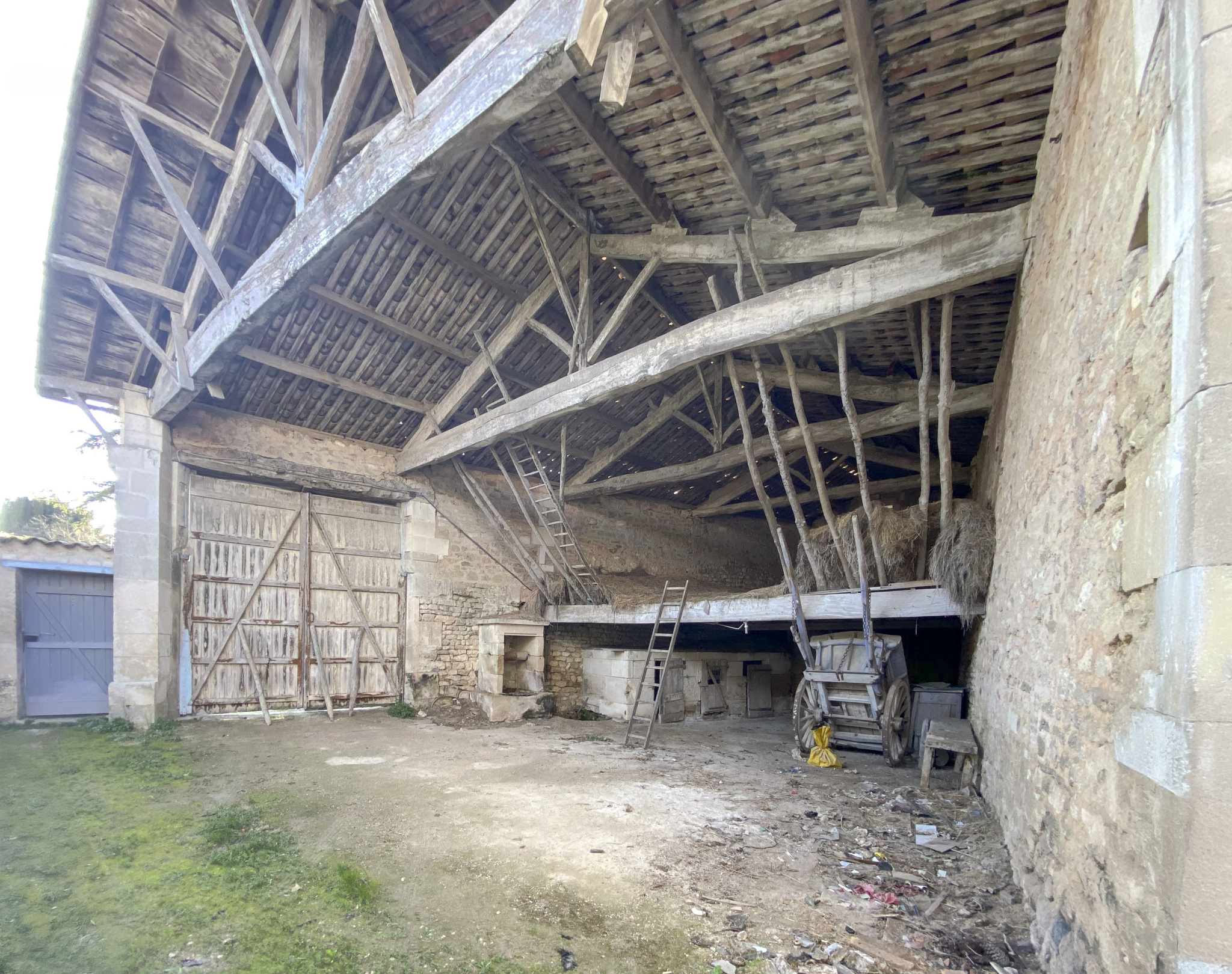 Sur la commune de CHAMPMILLON (16) - A 15 min de l'agglomération d'ANGOULEME, proche JARNAC et CHATEAUNEUF - Ancienne ferme viticole au caractère typique du XIXème édifié sur un terrain clos de murs d'environ 1979 m2. On accède à la propriété par un porche qui s'ouvre directement sur la grange ouverte et par une autre entrée indépendante. La maison de maître est à réhabiliter entièrement, c'est une belle endormie. Les dépendances sur plus de 500 m2 au sol offrent de multiples possibilités : grange ouverte, ancien pressoir, chambre à grain, hangar agricole métallique, étable, autre grange et ancien chai avec cuves sont les témoins d'un riche passé. Beaucoup de travaux sont à prévoir. Un bien idéal pour les amateurs de projets ambitieux !