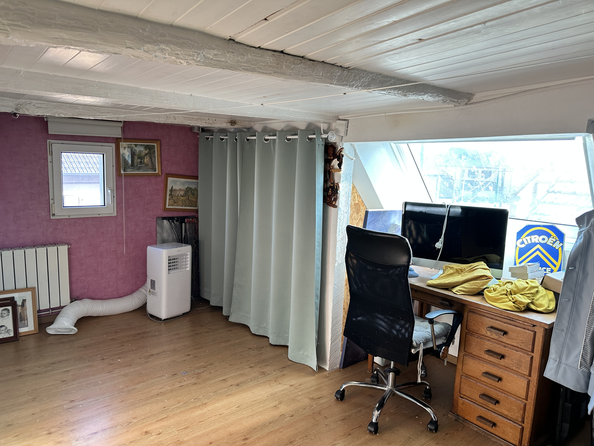 Sous les combles, un espace bureau pouvant servir de chambre d'adolescent.