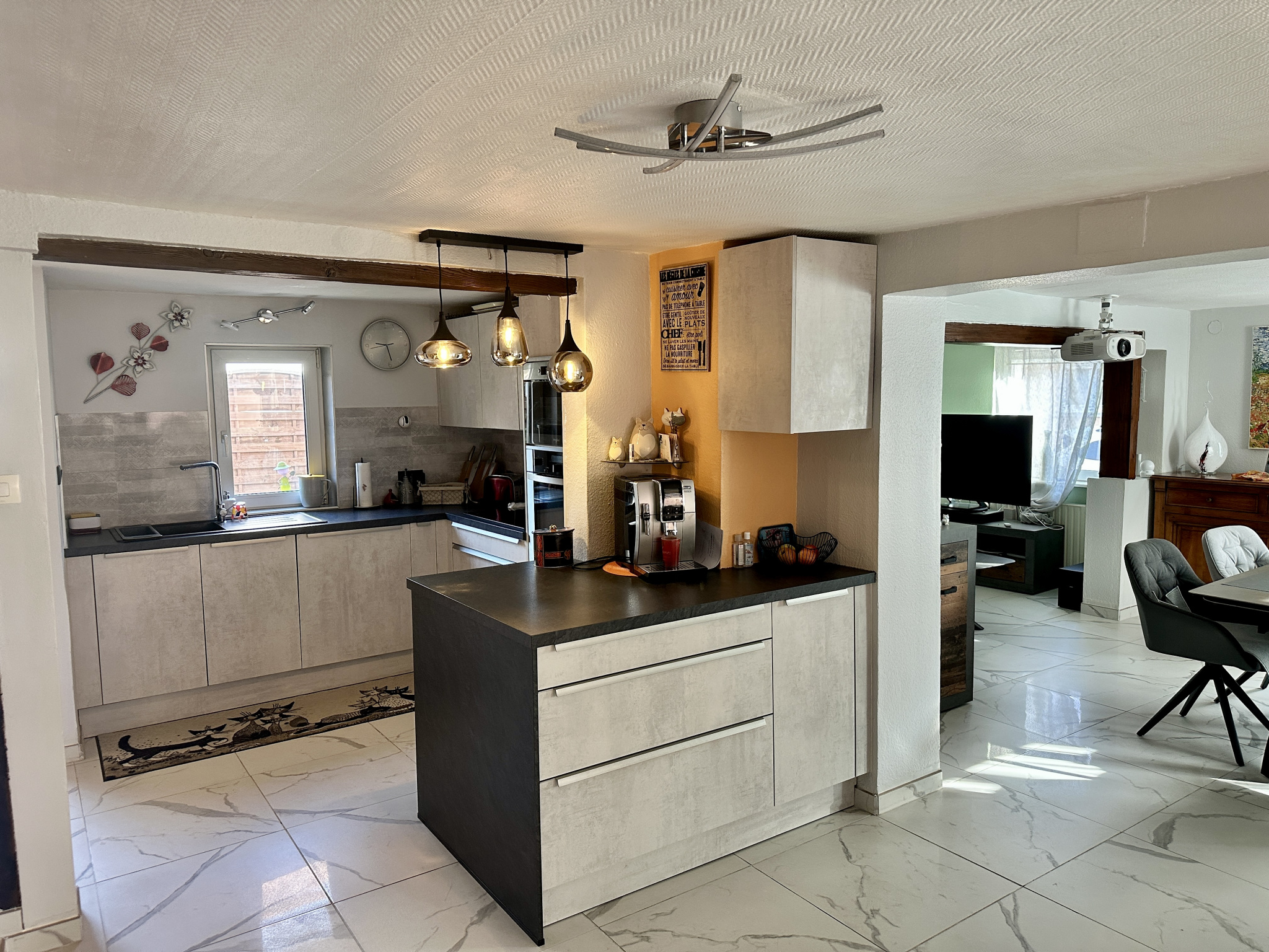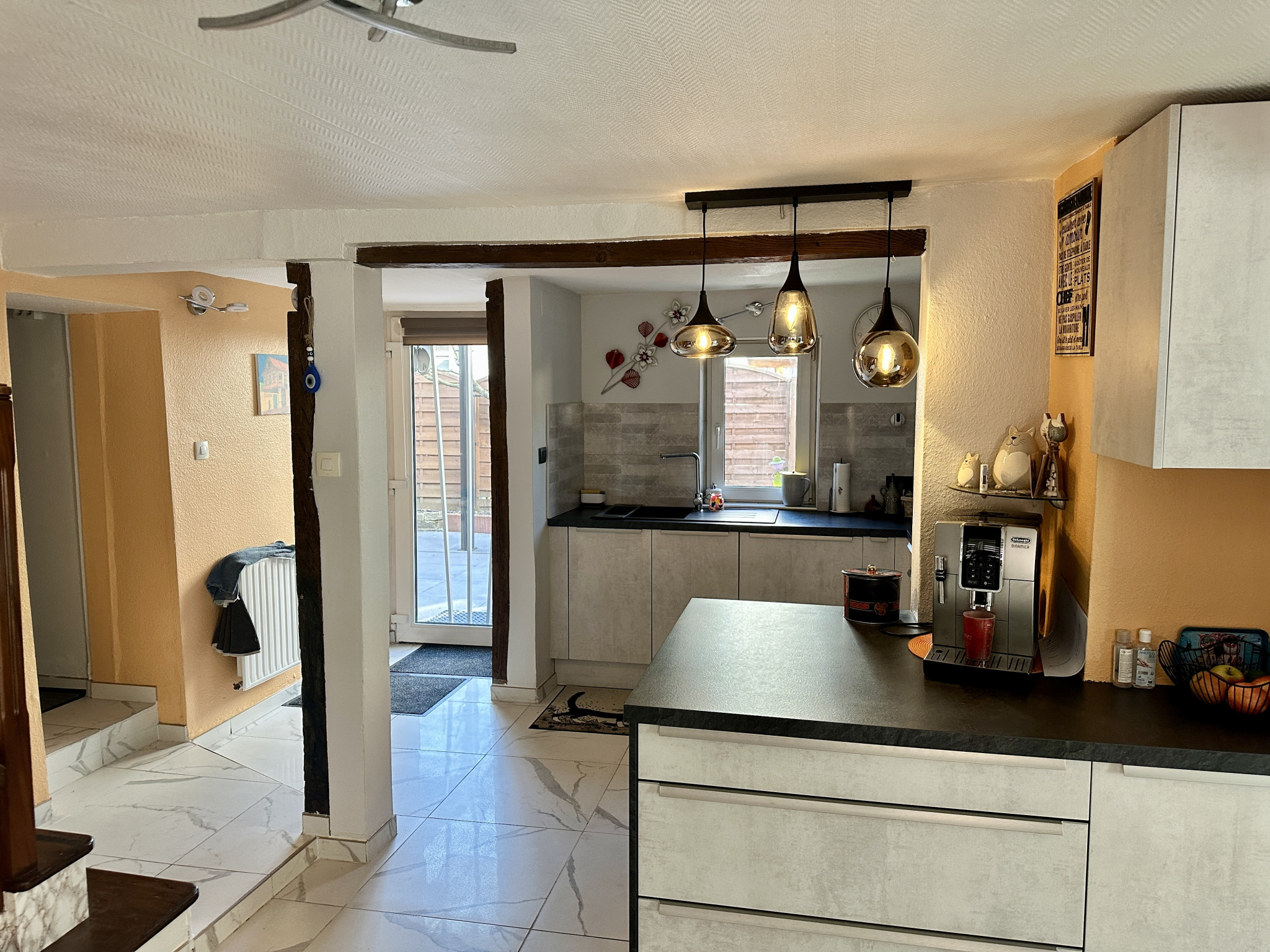 SAUSHEIM, situation calme proche du centre et des commerces, nous vous proposons à la vente cette charmante maison de village individuelle, entièrement rénovée, de type 5 pièces, d'une surface d'environ 135 m2 sol et 127 m2 habitable.Elle comprend un hall d'entrée, une cuisine entièrement équipée, un espace salle à manger, un salon, un cellier, une salle de bains avec baignoire et wc.