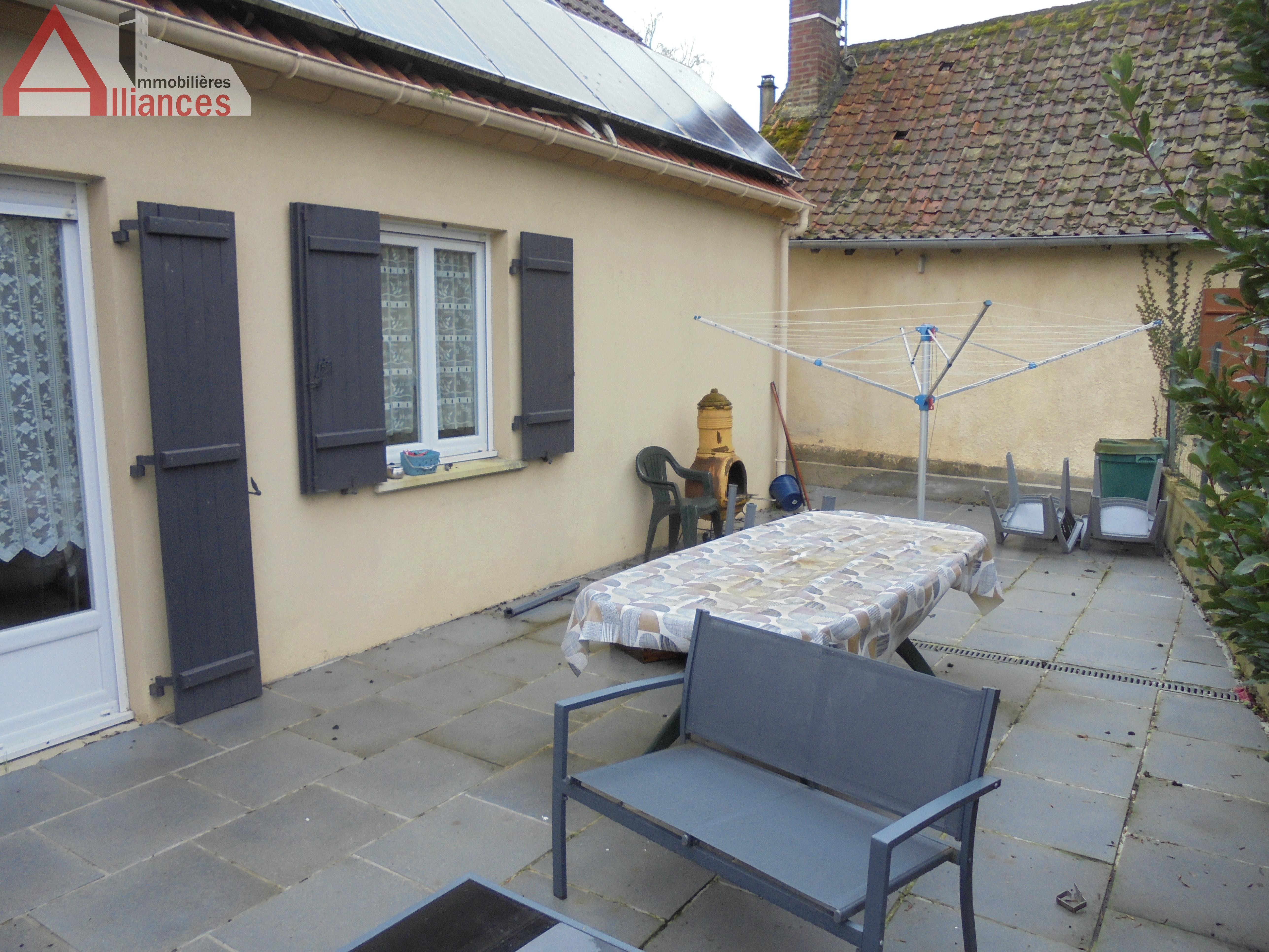 Belle et grande terrasse, garage, et grande place de parking devant et sur le coté de la maison.