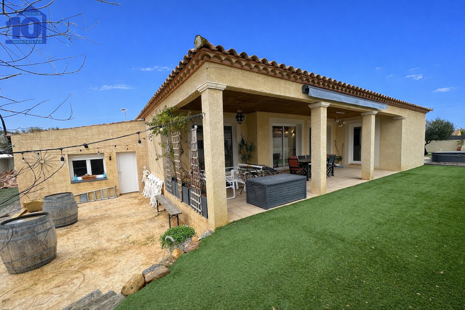 Dans un village recherché et dynamique, à seulement 10 minutes des plages et de Béziers, au calme au sein d'un lotissement, découvrez cette superbe villa de plain-pied de 142 m², entièrement climatisée, édifiée sur un terrain de 714 m² avec piscine et jacuzzi.