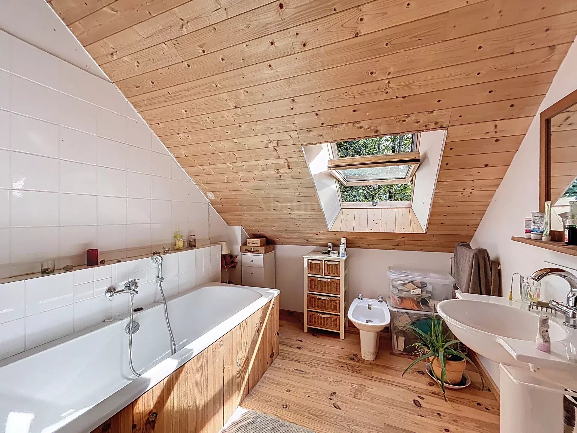 Beaucoup de charme et un confort unique avec des matériaux nobles (plancher en châtaignier) et des peintures écologiques.