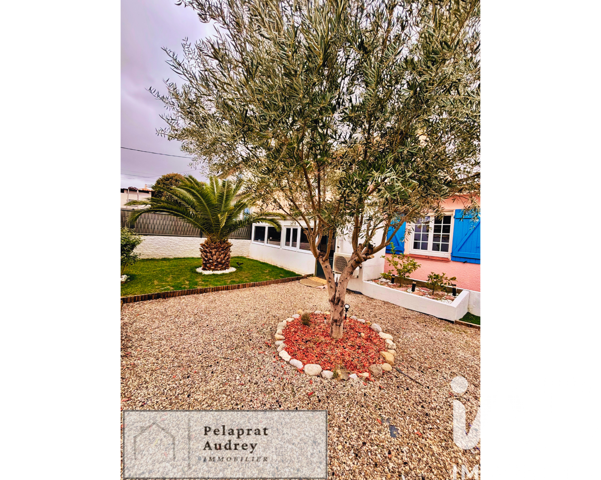 À l'arrière, le jardin parfaitement entretenu invite à la détente, avec son olivier, son majestueux palmier et un appentis offrant un espace de rangement supplémentaire.