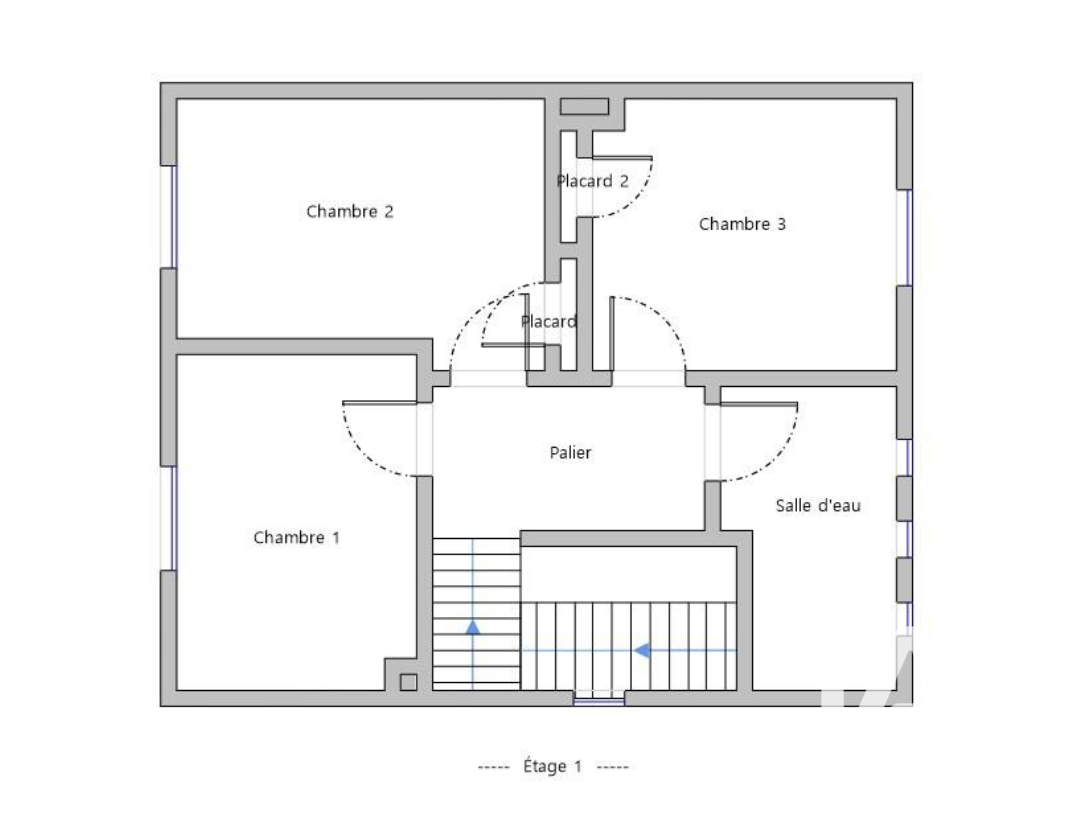 À l'étage, l'espace nuit se compose de trois chambres, dont deux avec placards intégrés, ainsi que d'une salle d'eau moderne avec douche à l'italienne et double vasque.
