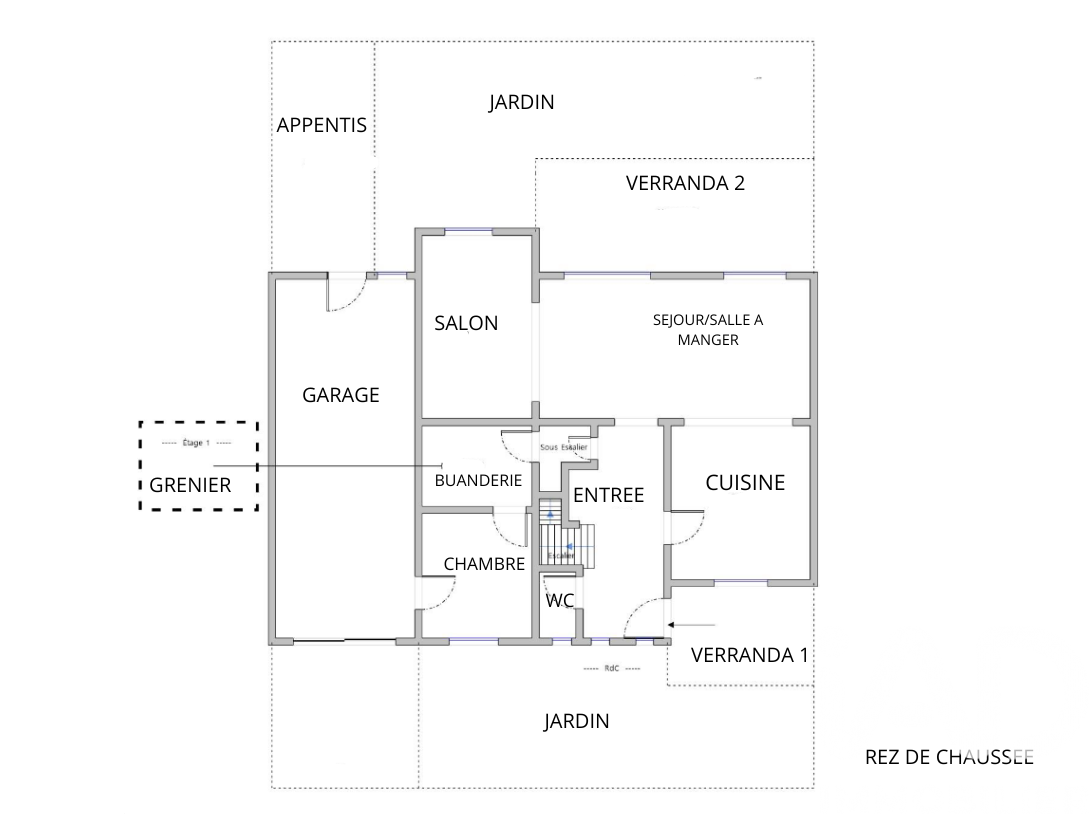 Le rez-de-chaussée propose également une buanderie, un WC indépendant, ainsi qu'une pièce de 10 m² avec accès extérieur, idéale comme chambre, bureau ou pour une activité professionnelle indépendante.