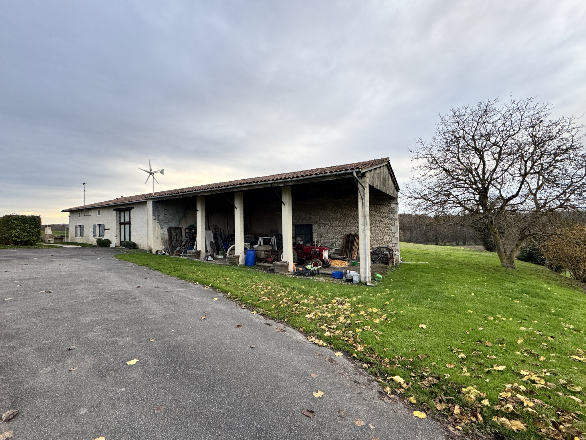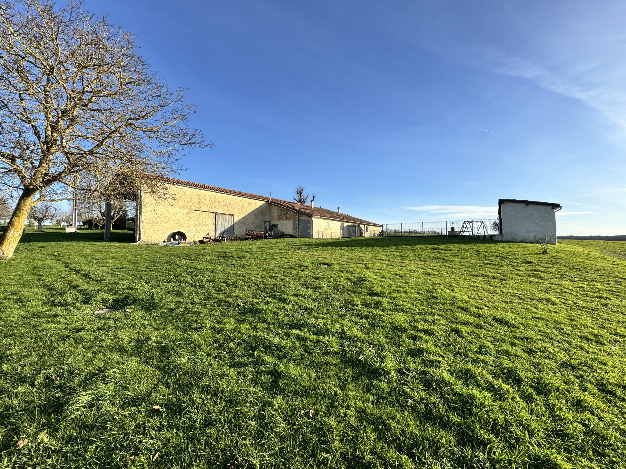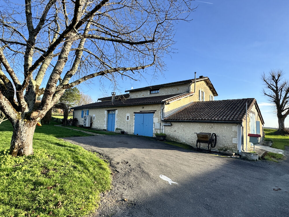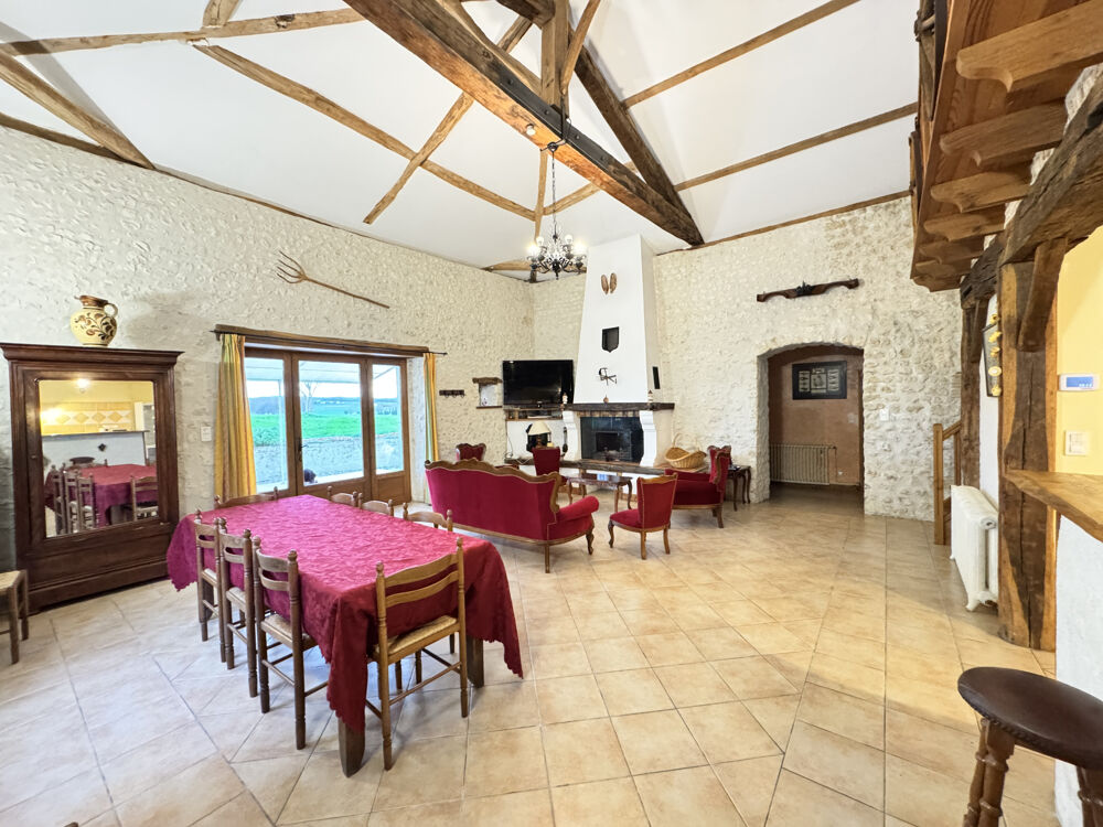 15 min Sud BARBEZIEUX (16) - Dans un environnement paisible et verdoyant, sans voisin, sans nuisance - Cet ensemble en pierre se compose d'une maison principale, d'un gîte indépendant et de dépendances, le tout édifié sur un terrain de 7563 m2. Le lieu est idéal pour un projet touristique immédiatement opérationnel. La propriété conjugue charme de l'ancien et confort moderne. Chauffage par pompe à chaleur et eau chaude par ballon thermodynamique solaire. La maison principale s'articule autour d'une pièce de vie lumineuse de 41 m2 avec mezzanine. Elle donne le ton de atmosphère chaleureuse de la bâtisse très ancienne. La cuisine de 17 m2, conviviale, prolonge agréablement l'espace. Au rez-de-chaussée, chambre de 19 m2, salle de bains ainsi qu'un cellier. À l'étage, la mezzanine de 20 m2, idéale pour un bureau ou un coin détente, distribiue trois chambres supplémentaires, une salle de bains et un WC indépendant. Le gîte, sur l'arrière, dans un autre bâtiment, offre 124 m2 habitables avec accès PMR. Il est vendu meublé. Il profite d'une chaudière à granulés neuve. Vaste séjour avec cuisine et accès cellier, trois chambres et une mezzanine. Le lieu est connu par une clientèle fidélisée. L'espace piscine est très convivial. Des autorisations administratives ont été accordèes afin de créer un deuxième gîte dans le reste du solide bâtiment. Les travaux qui reste à faire sont relativement simple à organiser. Dans la continuité un bel appenti, typique des fermes charentaises offre également un superbe potentiel. Garage, atelier, chenil, cave, puits avec pompe. Les abords agréables renforcent le caractère des lieux. Joli jardin arboré dont 40 chênes truffiers. L'ensemble se prête parfaitement à une vie familiale doublée d'un projet professionnel. Cadre harmonieux et facile d'accès. Les informations sur les risques auxquels ce bien est exposé sont disponibles sur le site Géorisques : www.georisques.gouv.fr.