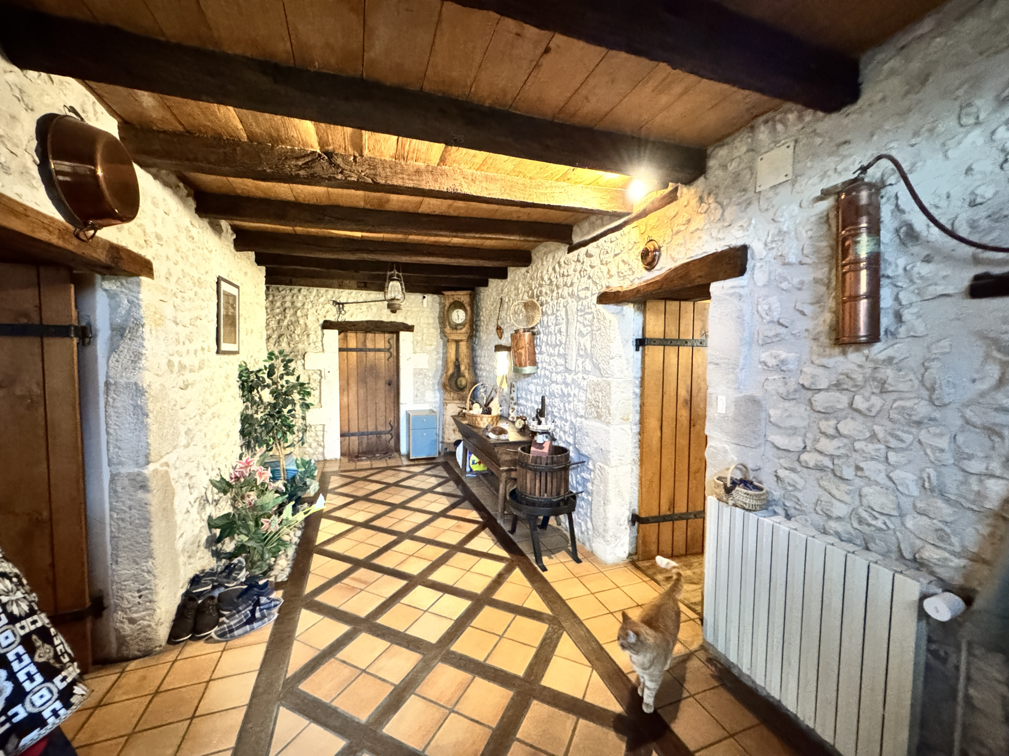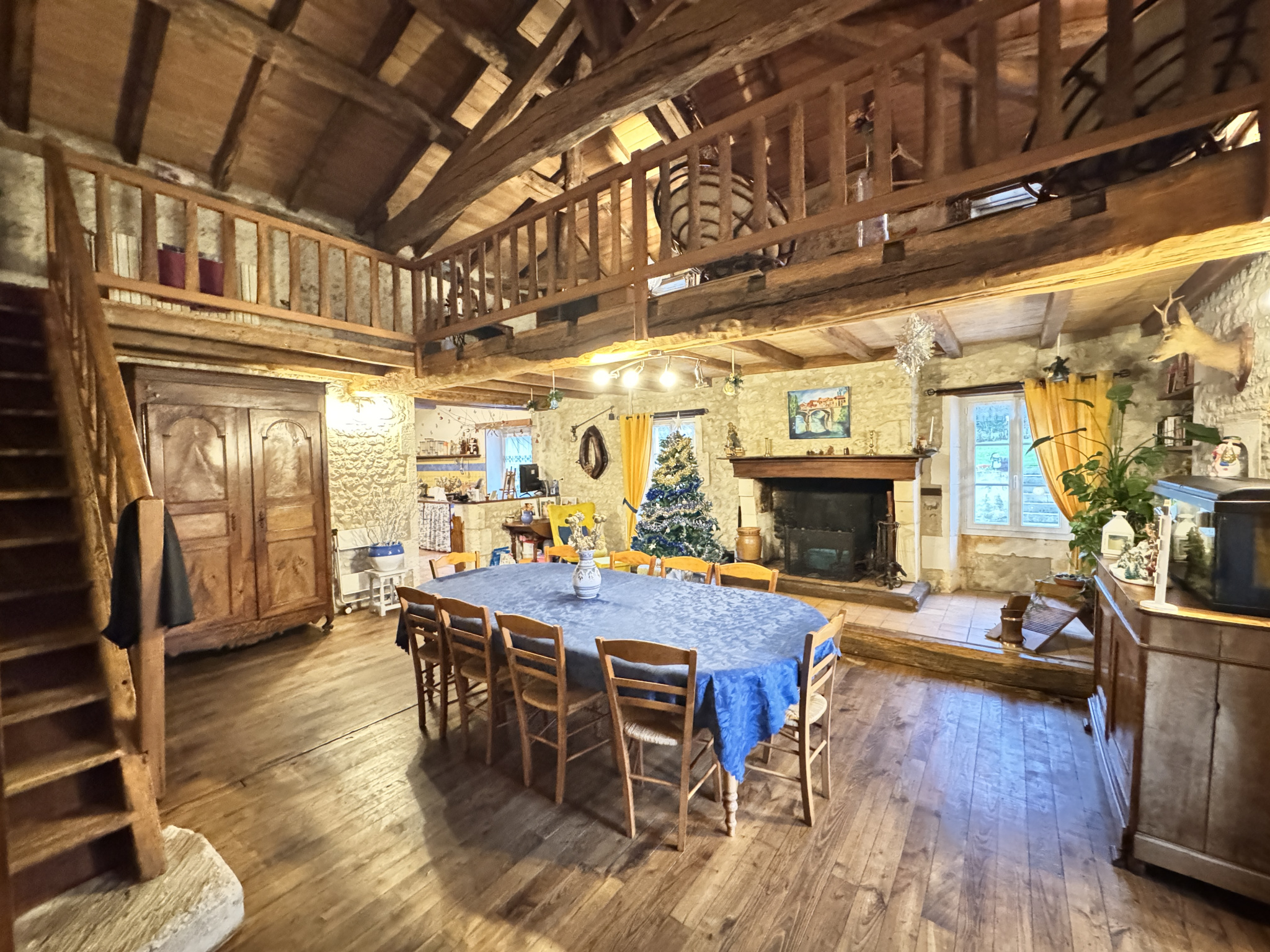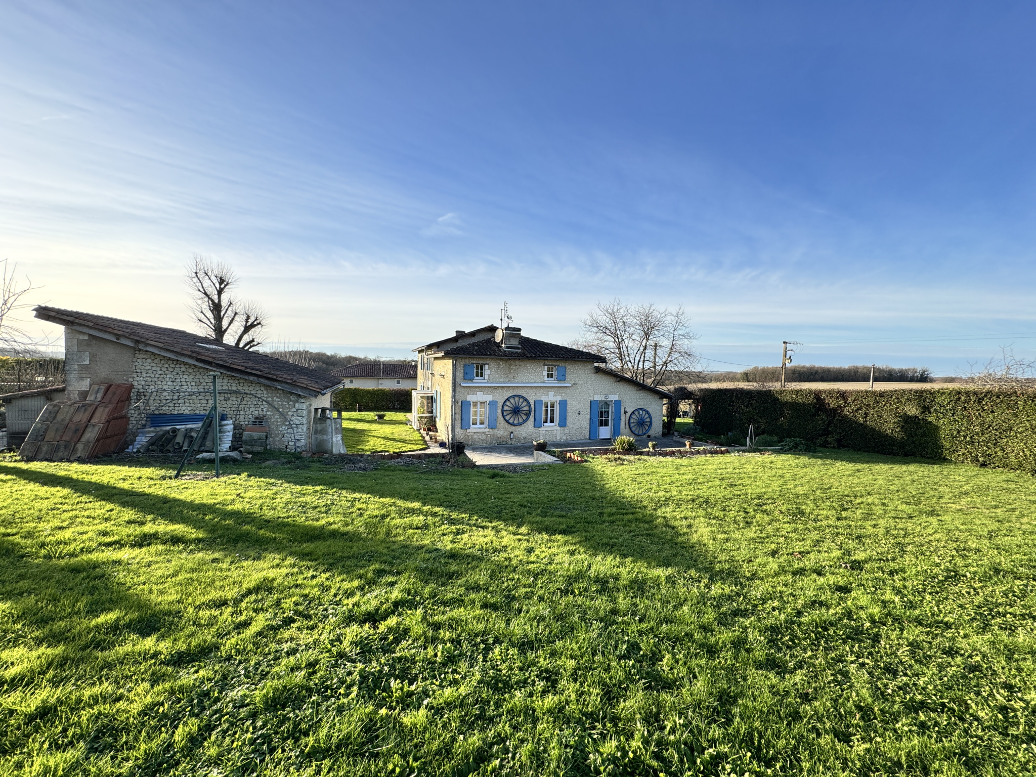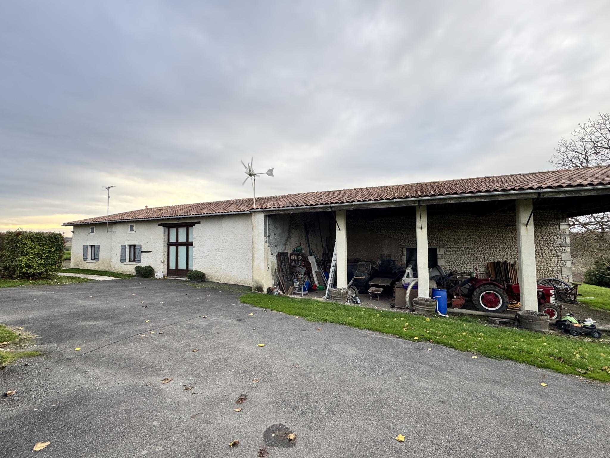 15 min Sud BARBEZIEUX (16) - Dans un environnement paisible et verdoyant, sans voisin, sans nuisance - Cet ensemble en pierre se compose d'une maison principale, d'un gîte indépendant et de dépendances, le tout édifié sur un terrain de 7563 m2. Le lieu est idéal pour un projet touristique immédiatement opérationnel. La propriété conjugue charme de l'ancien et confort moderne. Chauffage par pompe à chaleur et eau chaude par ballon thermodynamique solaire. La maison principale s'articule autour d'une pièce de vie lumineuse de 41 m2 avec mezzanine. Elle donne le ton de atmosphère chaleureuse de la bâtisse très ancienne. La cuisine de 17 m2, conviviale, prolonge agréablement l'espace. Au rez-de-chaussée, chambre de 19 m2, salle de bains ainsi qu'un cellier. À l'étage, la mezzanine de 20 m2, idéale pour un bureau ou un coin détente, distribiue trois chambres supplémentaires, une salle de bains et un WC indépendant. Le gîte, sur l'arrière, dans un autre bâtiment, offre 124 m2 habitables avec accès PMR. Il est vendu meublé. Il profite d'une chaudière à granulés neuve. Vaste séjour avec cuisine et accès cellier, trois chambres et une mezzanine. Le lieu est connu par une clientèle fidélisée. L'espace piscine est très convivial. Des autorisations administratives ont été accordèes afin de créer un deuxième gîte dans le reste du solide bâtiment. Les travaux qui reste à faire sont relativement simple à organiser. Dans la continuité un bel appenti, typique des fermes charentaises offre également un superbe potentiel. Garage, atelier, chenil, cave, puits avec pompe. Les abords agréables renforcent le caractère des lieux. Joli jardin arboré dont 40 chênes truffiers. L'ensemble se prête parfaitement à une vie familiale doublée d'un projet professionnel. Cadre harmonieux et facile d'accès. Les informations sur les risques auxquels ce bien est exposé sont disponibles sur le site Géorisques : www.georisques.gouv.fr.