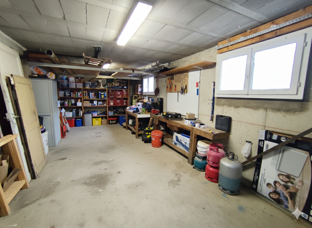 La maison dispose également d'un sous sol complet comprenant une buanderie avec douche, un garage, un atelier, une cave et des espaces de rangement. La taxe foncière s'élève à 1 010 euros.