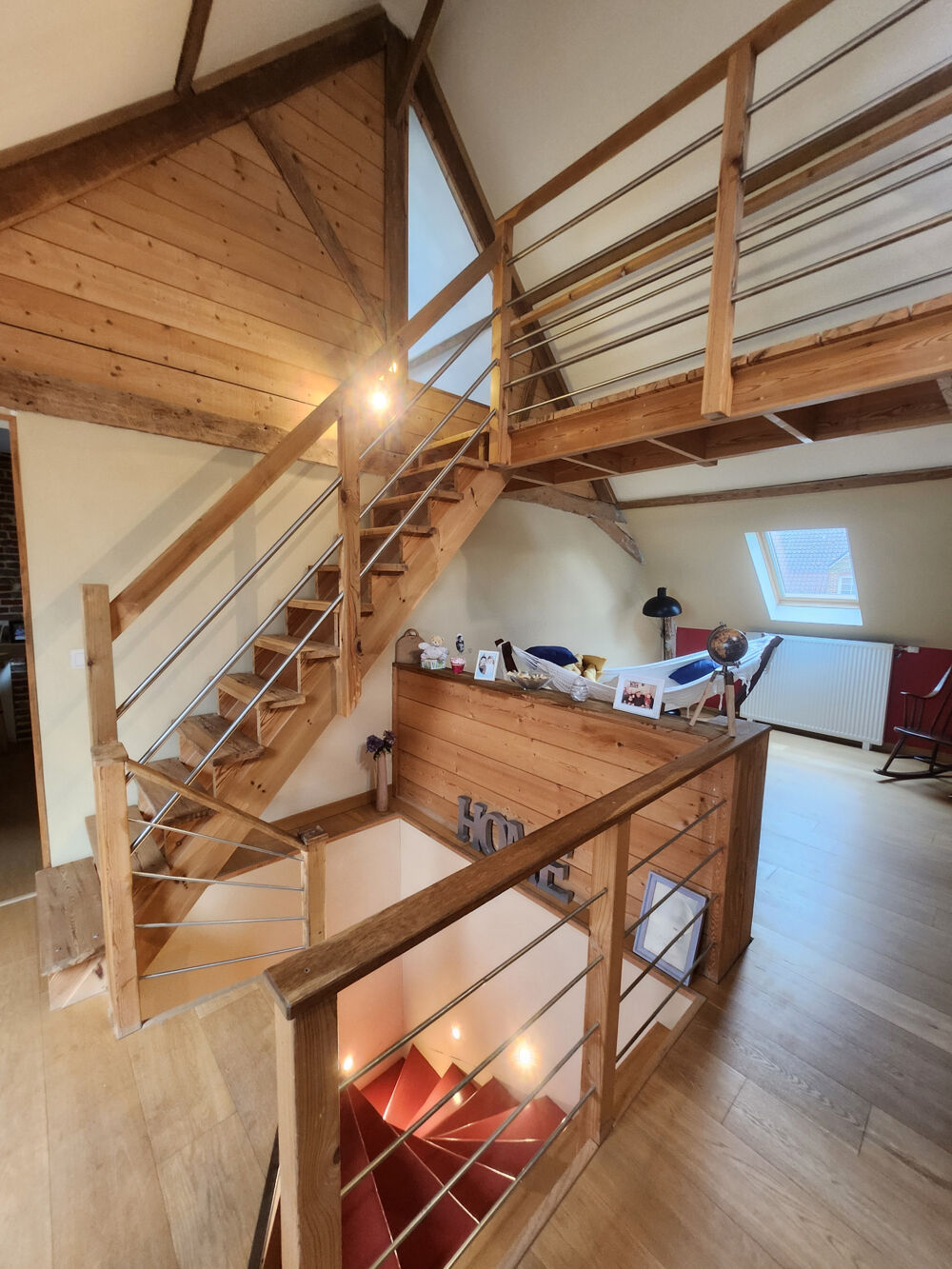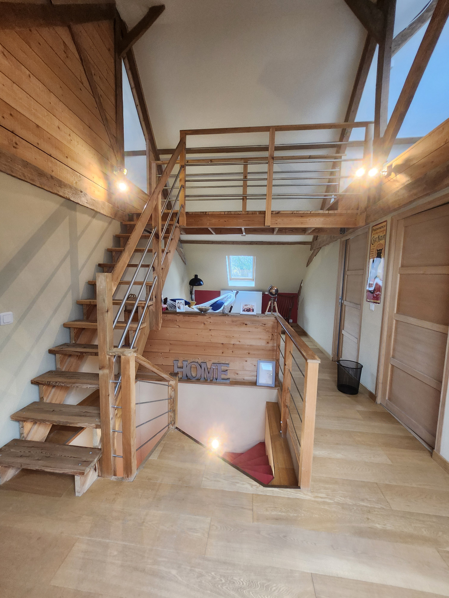 L'étage a été entièrement restauré, et propose 3 belles chambres ainsi qu'une grande mezzanine.