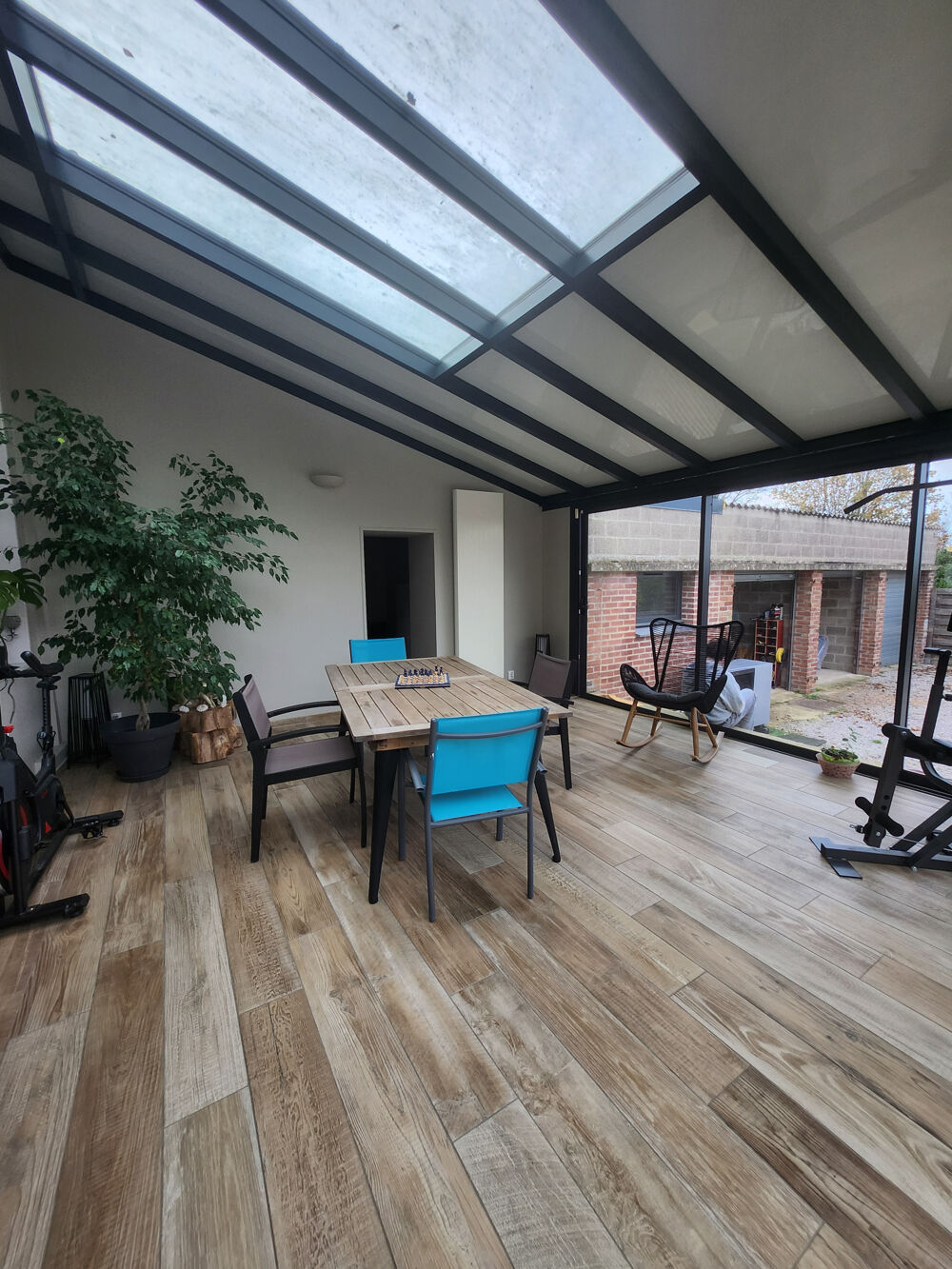3 garages et un atelier feront le bonheur d'un bricoleur! Un jardin et une terrasse s'ouvrent sur une vue verdoyante.