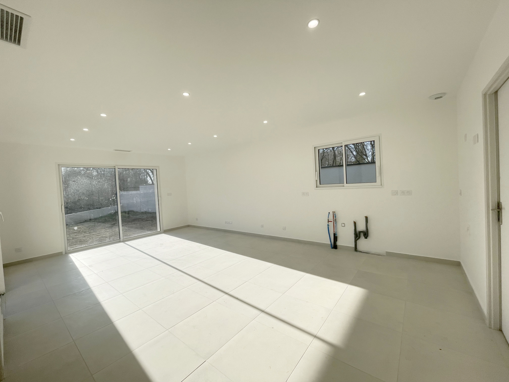 Construite en 2024, elle répond au normes RE2020 avec un chauffage gainable, du double vitrage et volets roulants électriques et une production d'eau chaude sanitaire via ballon thermodynamique.