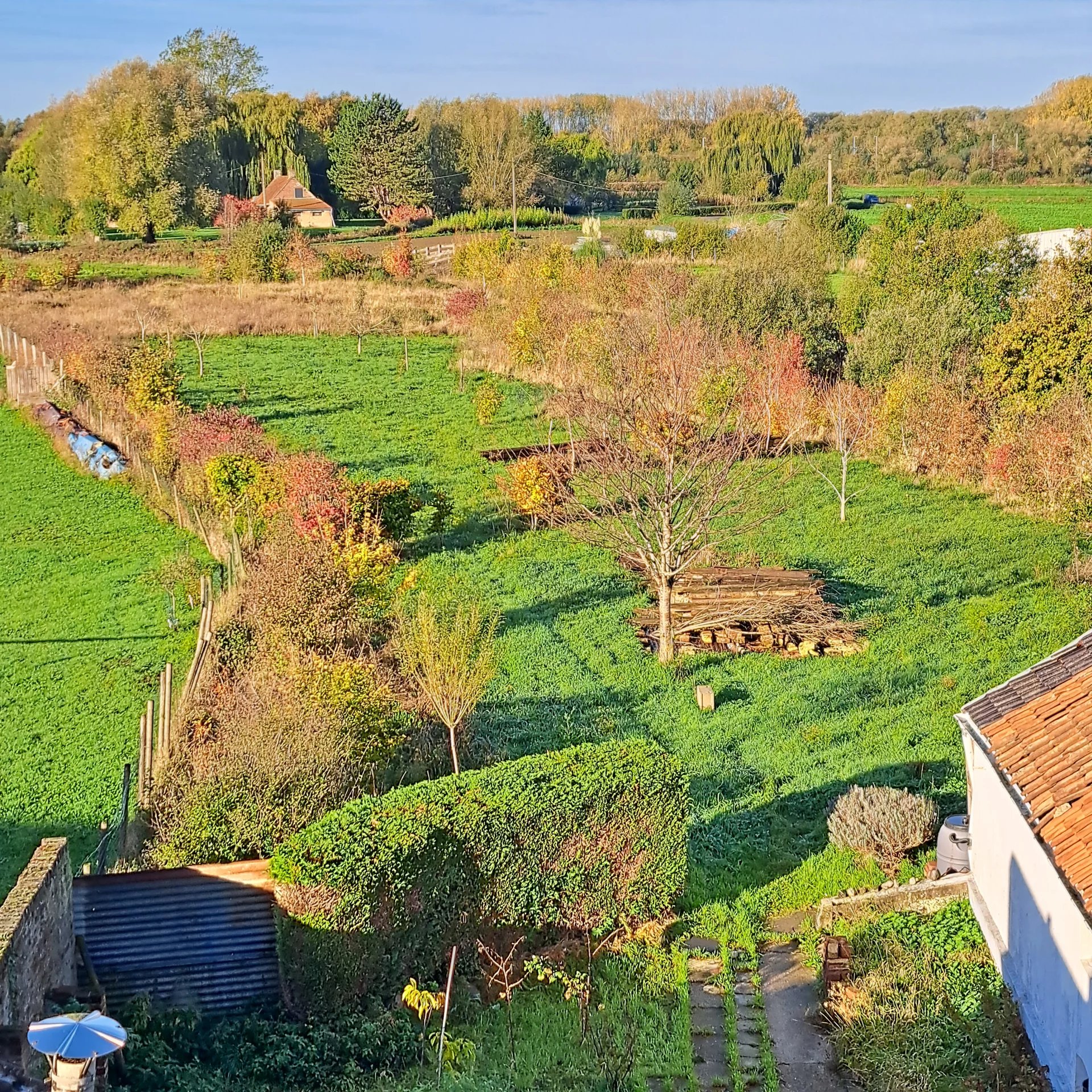 Le terrain d'une surface totale d'environ 4900m² permet l'accès au marais audomarois (fossés curés en profondeur par les Wateringues en 2019).