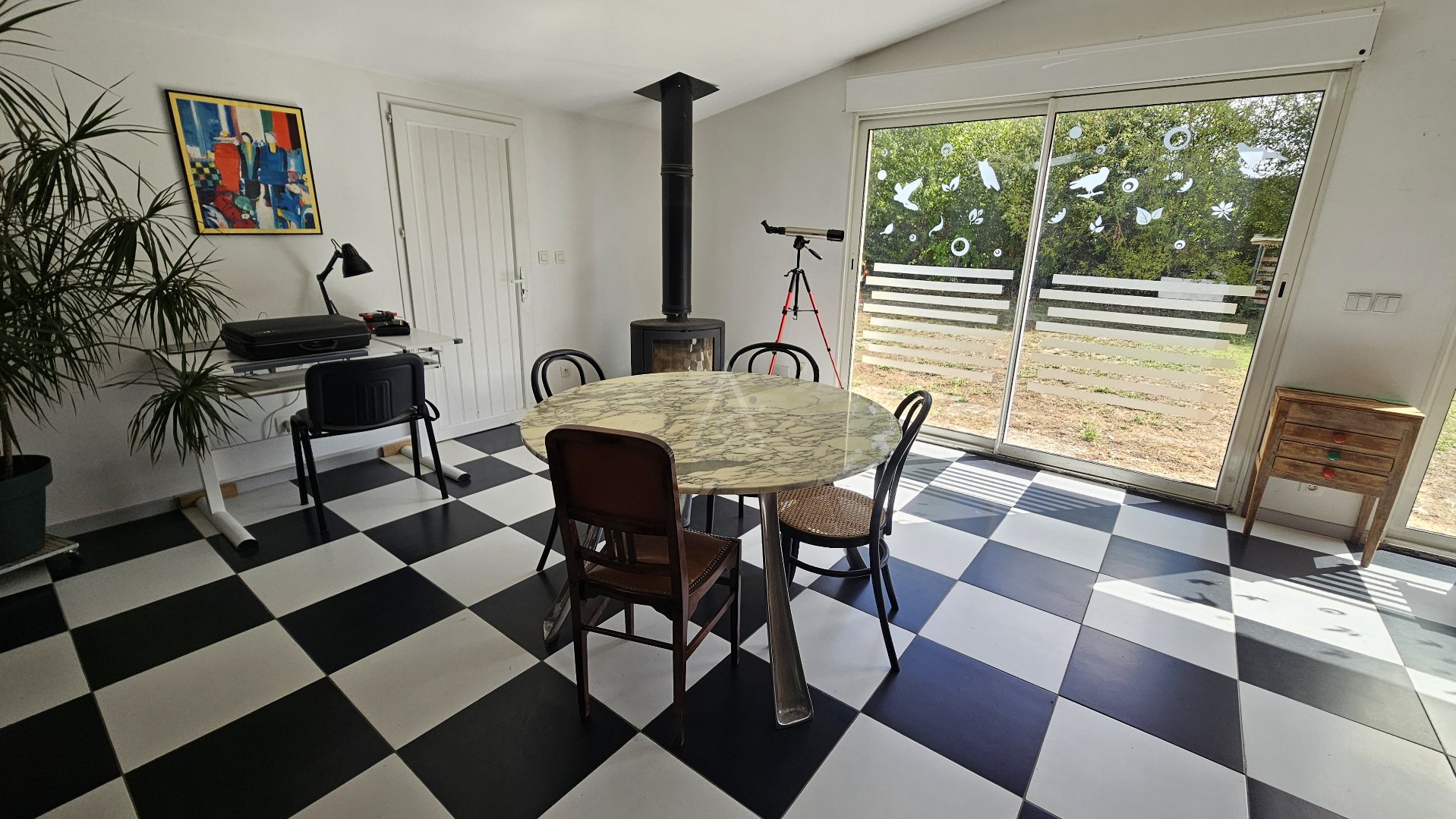 Elle se compose d'une grande pièce de vie lumineuse de 66m² (cuisine, salon, salle à manger), 3 chambres, 2 bureaux, une salle d'eau, un WC, et un cellier.