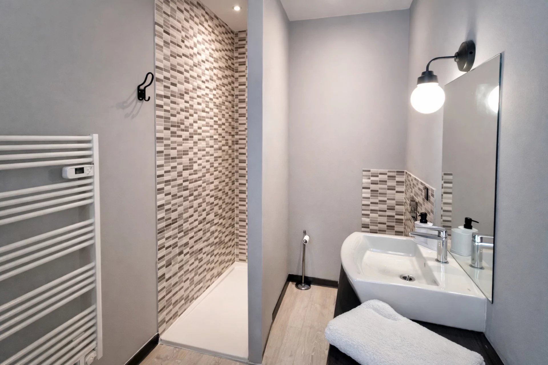Salle de bains avec douche, baignoire et WC
