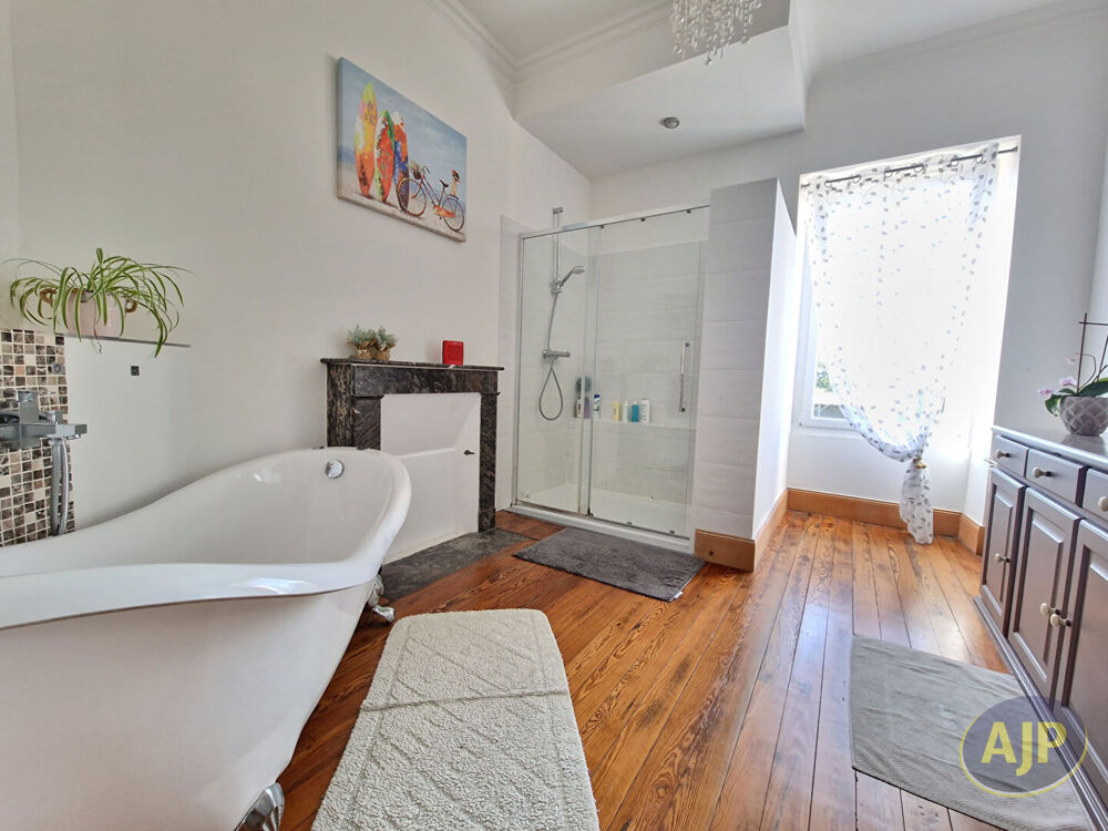 Laissez vous séduire par le charme et le cachet de cette maison bourgeoise de 1900, idéalement située sur la commune de La Limouzinière. La partie principale se compose, au rez-de-chaussée d'une spacieuse entrée, une vaste cuisine aménagée et équipée avec une cheminée en granit, un salon séjour traversant, avec cheminée insert et moulures d'origine au plafond, une arrière-cuisine, un WC indépendant, dans une aile de la maison une suite parentale, 2 chambres en étage(cette partie pourrait être réservée à une location). A l'étage : un palier desservant 3 belles chambres sur parquet chêne massif d'origine, une salle de bains(baignoire et douche), un dressing, WC . Au 2e étage un grenier entièrement réaménagé d'environ 72 m², avec WC et point d'eau (idéal salle de jeux, bureau, suite parentale, etc.) Sur une parcelle de plus de1800 m² paysagée avec nombreux arbres fruitiers, clos de murs en pierres, vous trouverez une grange en pierres apparentes, ainsi qu'une autre dépendance dont 3 garages (un compatible pour camping car). A l'étage de cette dépendance vaste grenier pouvant servir de stockage. Un puits. Une piscine chauffée vient compléter ce bien (8mX4m), avec une terrasse bois d'environ 100m². Bien d'exception rare sur le secteur, à voir sans tarder. (3.73 % honoraires TTC à la charge de l'acquéreur.)Etat général : Bon Etat