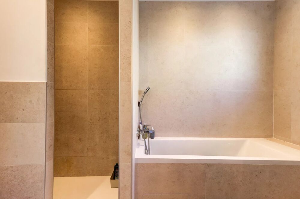 Une salle de bains et douche avec WC complète ce niveau.