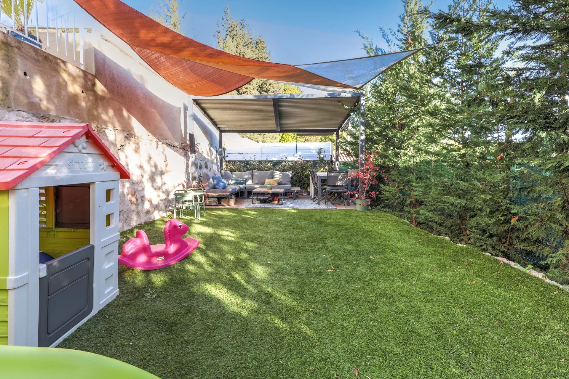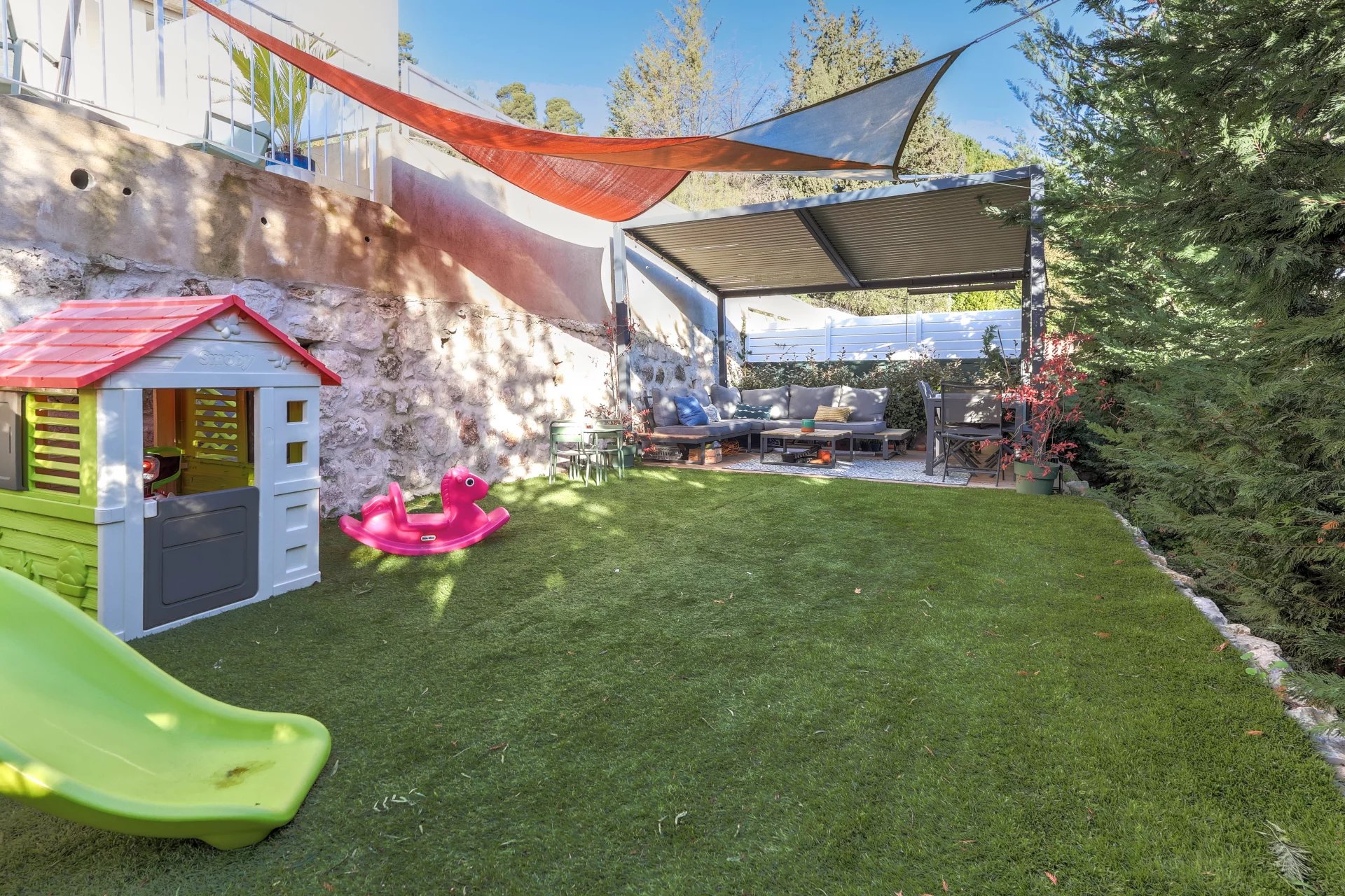 Vous profiterez ainsi d'une terrasse à ciel ouvert de 22m2 ainsi que d'un jardin d'environ 73m², idéal pour partager des moments en famille ou entre amis.