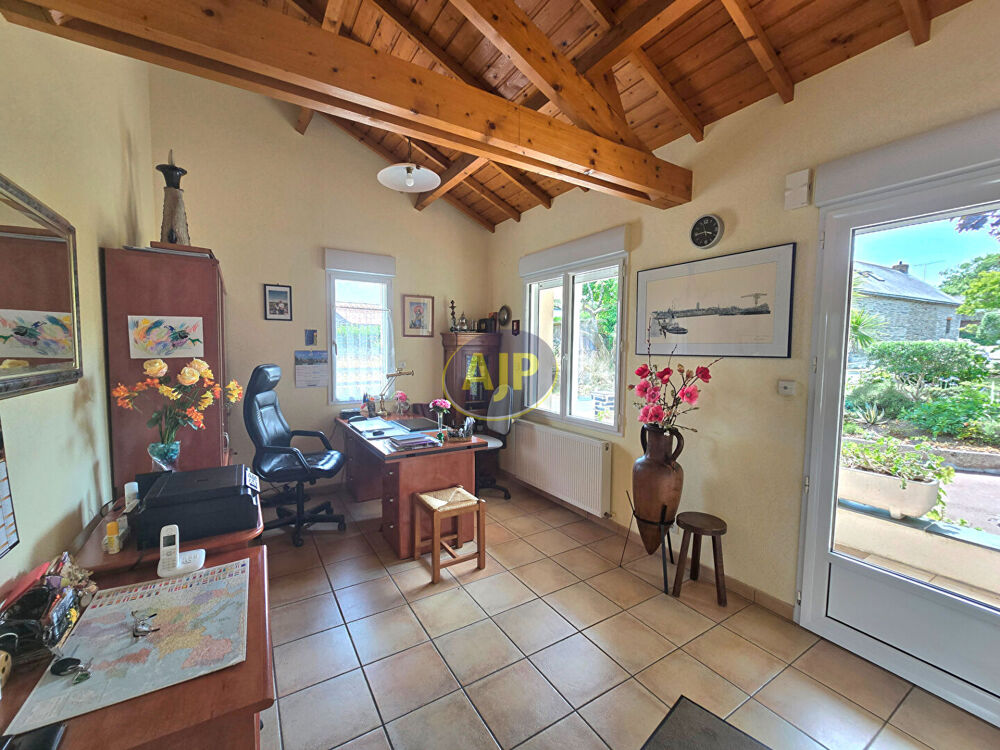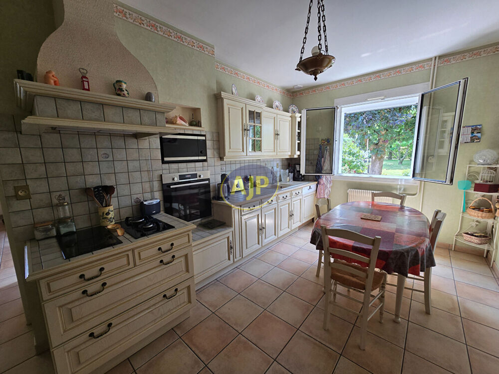 Bel ensemble, niché dans son bourg offrant : - une spacieuse et charmante maison d'habitation d'environ 190 m² dotée de belles prestations et matériaux de qualités : hall d'entrée, séjour et salon en enfilade dont 2 cheminées, cuisine aménagée et équipée, arrière cuisine, bureau, 3 chambres de plain pied dont une avec salle d'eau privative/wc, salle de bain (avec douche et baignoire), cabinet de toilette. A l'étage une 4e chambre avec cabinet de toilette, grenier (poss 5e chambre). Sous-sol (garage, buanderie, cave), terrasse Sud-Ouest - un bâtis de 2003 d'env 90 m² à usage de garage (poss 3 voitures voir même une caravane...) ou prévoir une habitation de plain pied car accès et terrain indépendant possible. L'ensemble sur 2580m² de terrain en zone UA, paysagé dont 100 rosiers, 3 accès voitures (tout à l'égout, fibre, alarme...) (4.00 % honoraires TTC à la charge de l'acquéreur.)