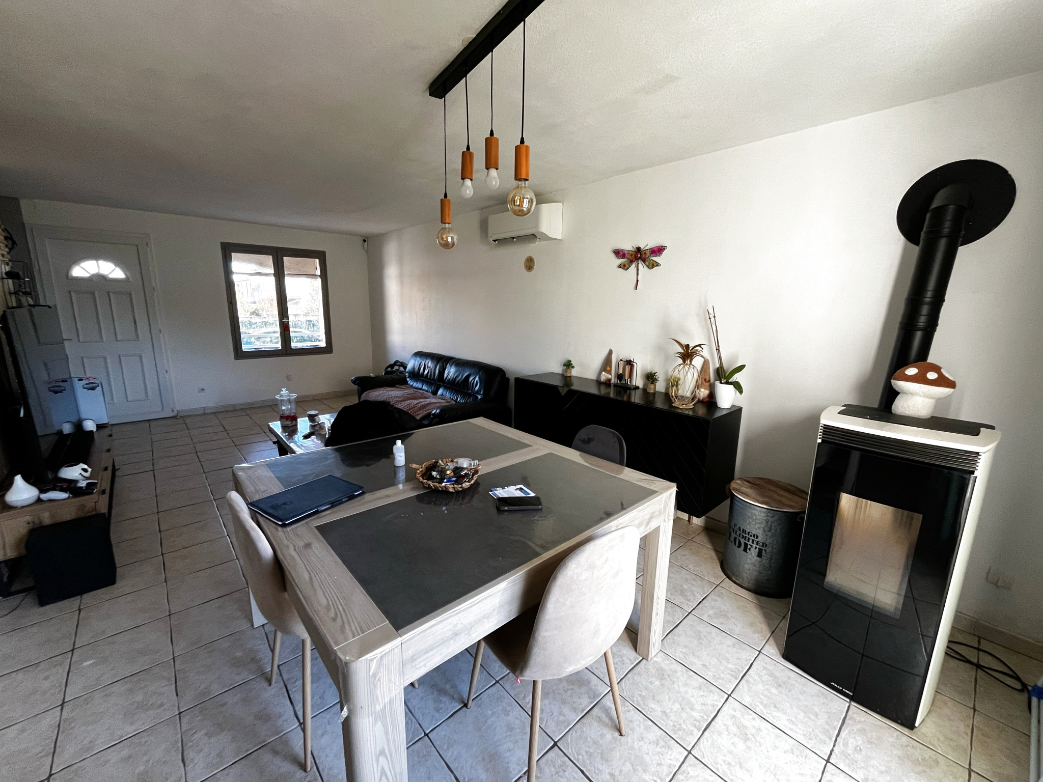 Chauffage au poêle à granulés ainsi que qu'une clim réversible.