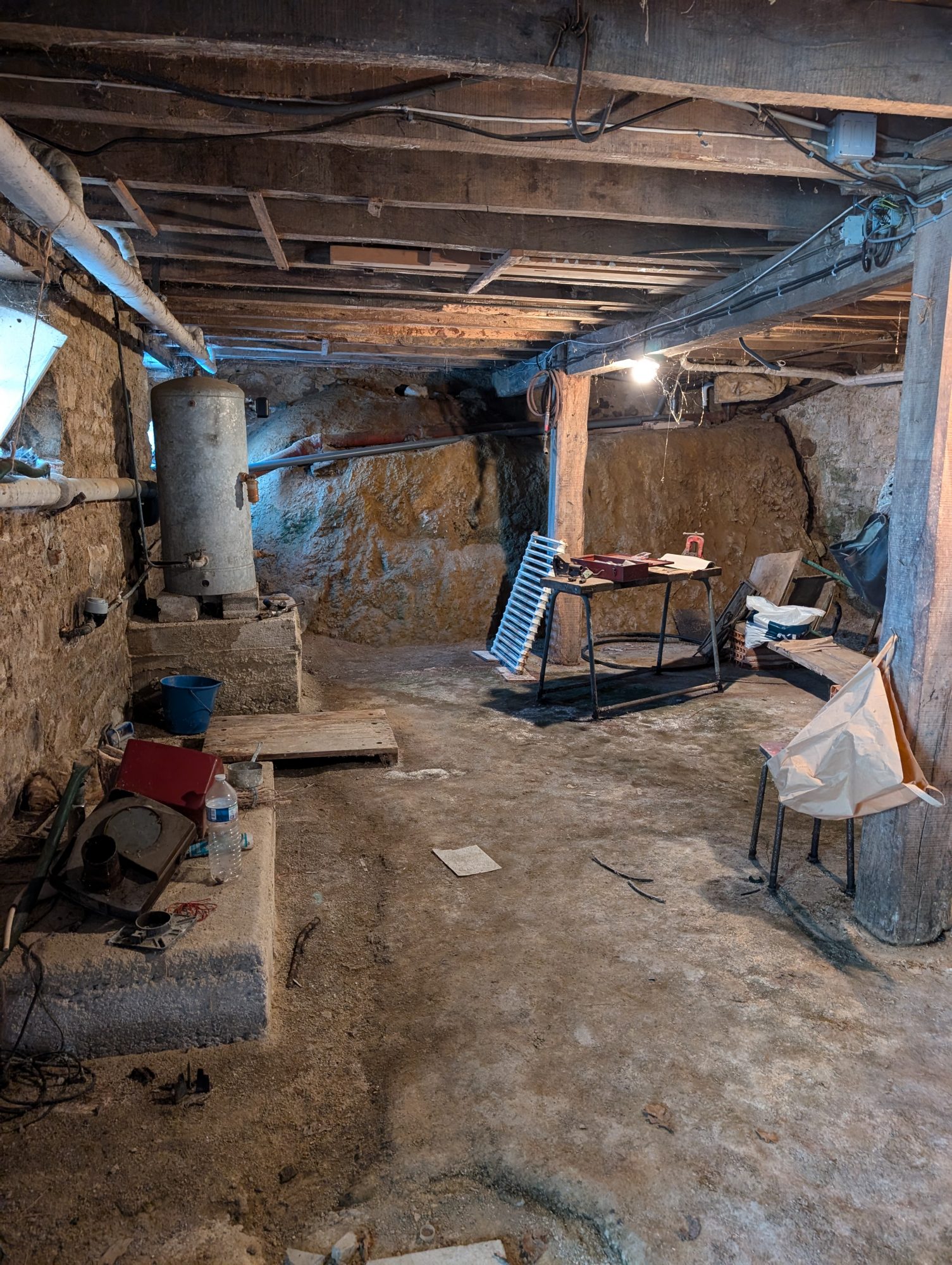 Elle comprend au rez-de-chaussée surélevé, une cuisine avec une cheminée, un salon, une chambre, une salle d'eau et un WC.