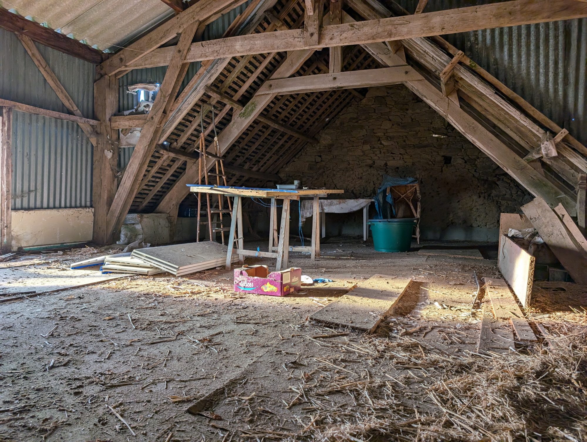 A l'étage, un pallier desservant 2 chambres avec chacune un petit grenier pouvant être aménagé en dressing.