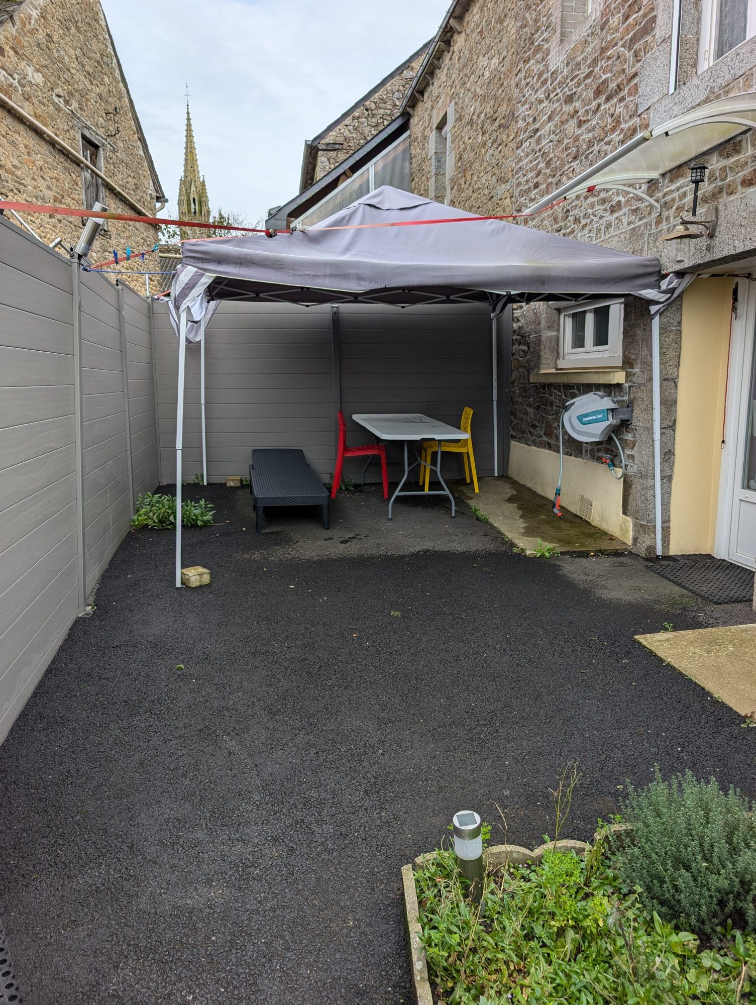 Vous profiterez d'un espace de vie extérieur à l'abri des regards, une cour et un garage.