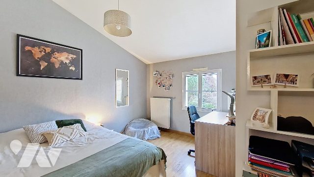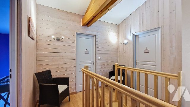 A l'étage, trois grandes chambres (dont une avec dressing), un second W.C. et une salle de bains de 11m² complètent ce second espace chaleureux.
