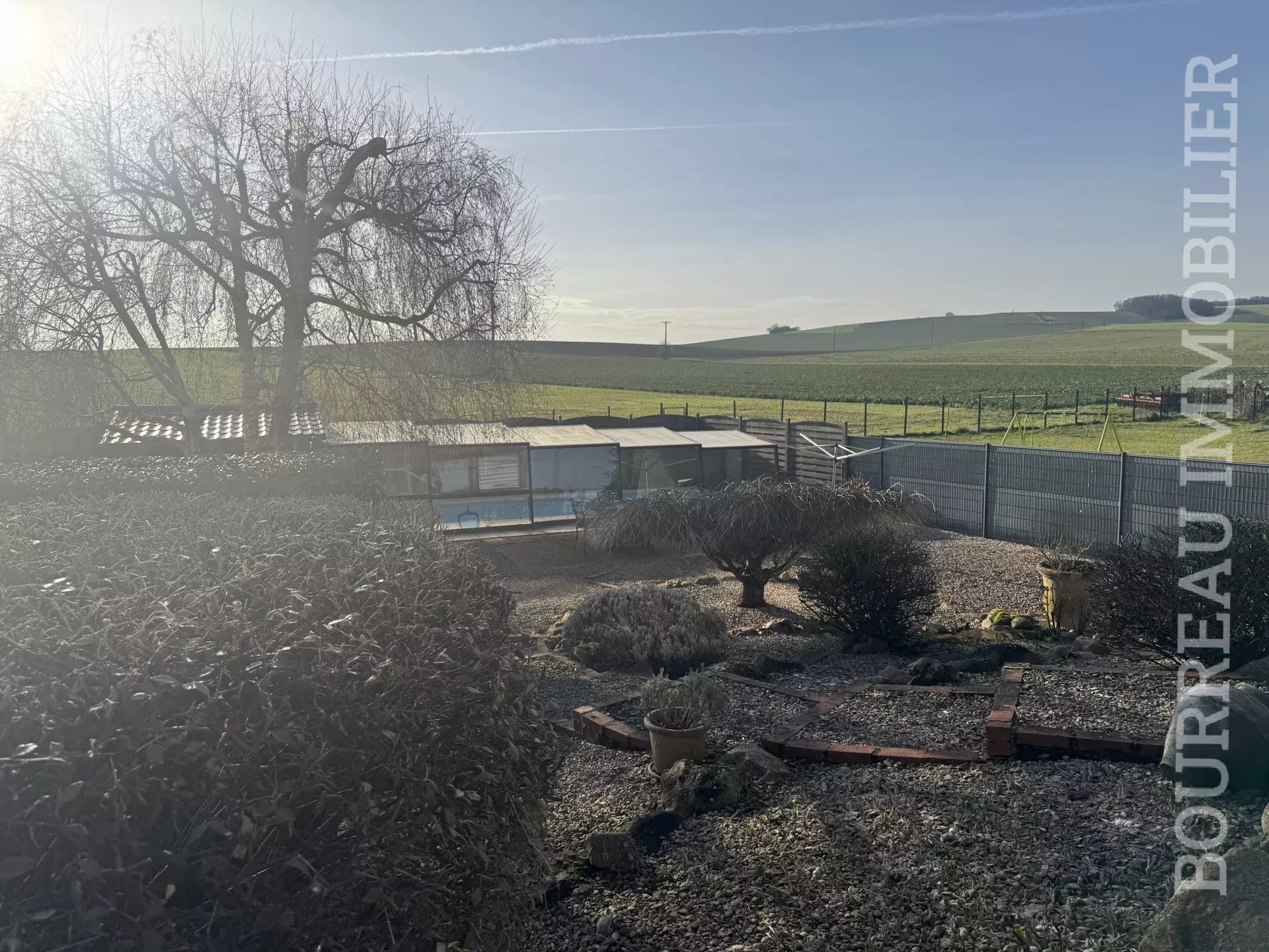 EXCLUSIVITE: PAVILLON SUR SOUS-SOL EN EXCELLENT ETAT ET SA PISCINE CHAUFFEE comprenant: Entrée par véranda, entrée/dégagement, double séjour avec cheminée insert, cuisine aménagée et équipée, suite parentale (Chambre et salle d'eau avec wc), salle d'eau avec wc, bureau ou chambre.A l'étage: Palier desservant 2 chambres, bureau/dressing, salle de bains avec wc.