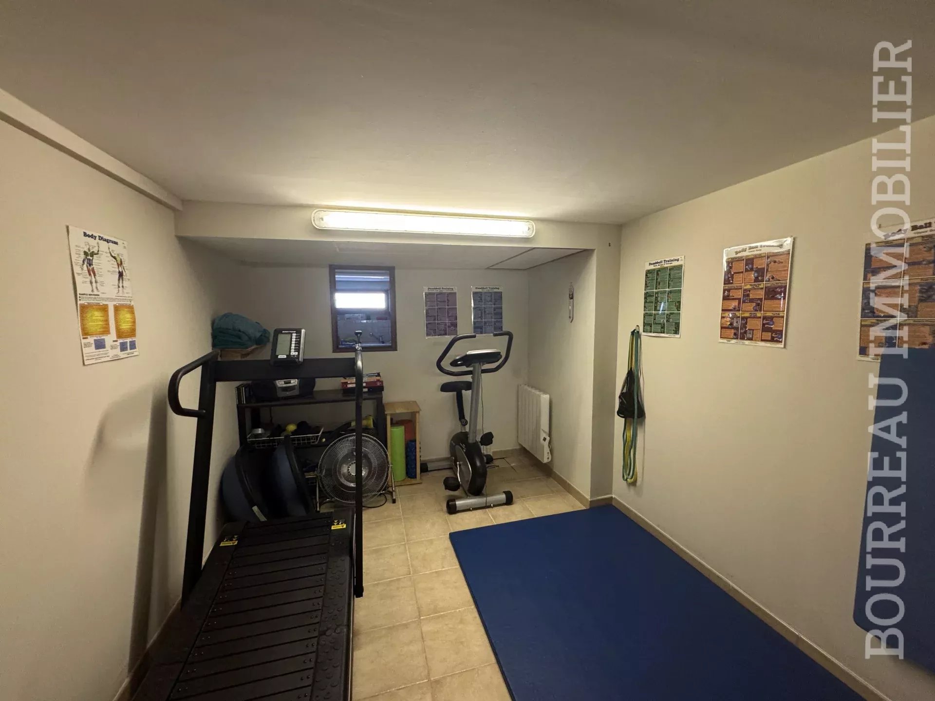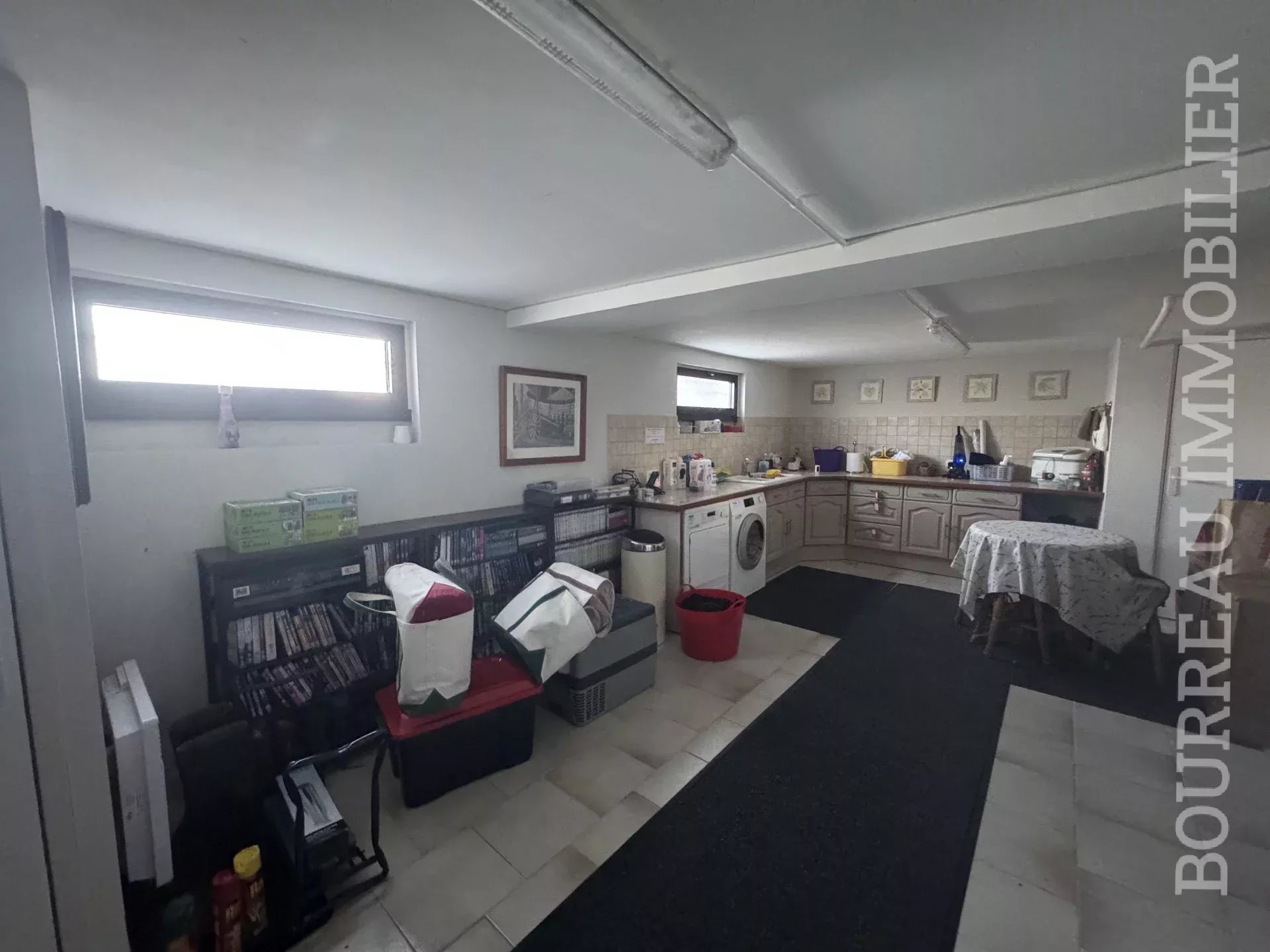 S/Sol: Dégagement, salle de sport, cuisine d'été aménagée et équipée, local compteur et adoucisseur d'eau, cave, garage 2 voitures et atelier.