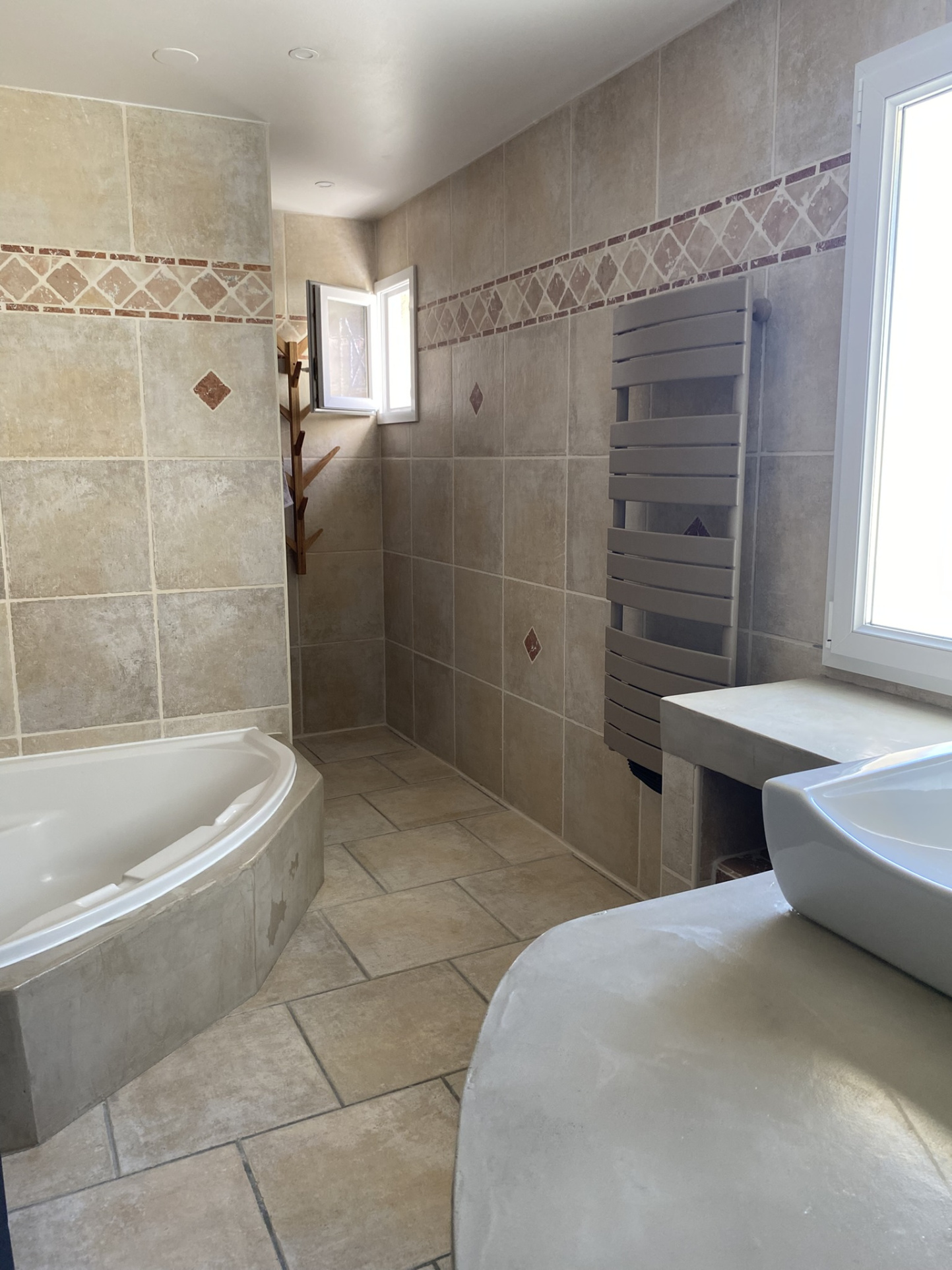 Côté bien-être : deux salles de bain au design contemporain, dont une équipée d'une baignoire d'angle, assurent un confort optimal à chaque niveau.