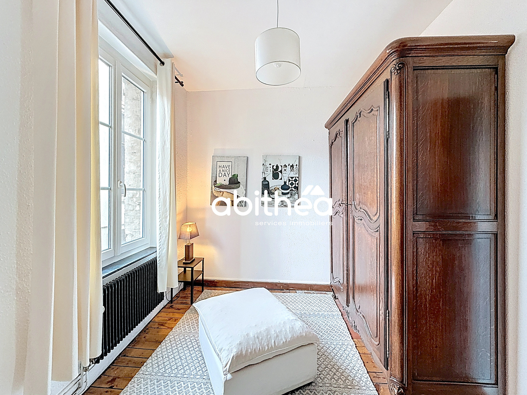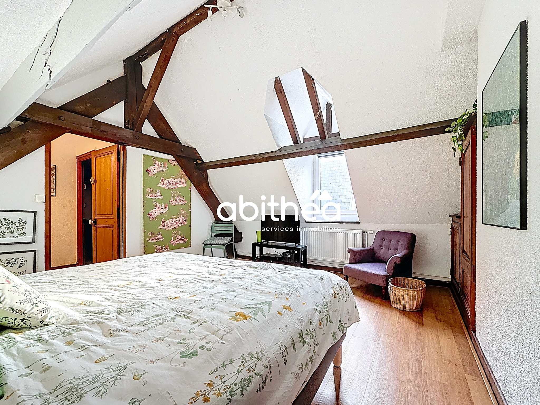 Au second étage, deux pièces viennent compléter l'espace nuit, chacune sublimée par ses poutres apparentes et sa belle ouverture apportant une lumière douce et naturelle. Superbe vue sur les toits arrageois. La seconde pièce offre une grande souplesse d'usage et peut accueillir selon les besoins un dressing, un bureau, une chambre ou un espace plus intime, laissant libre cours à l'aménagement.