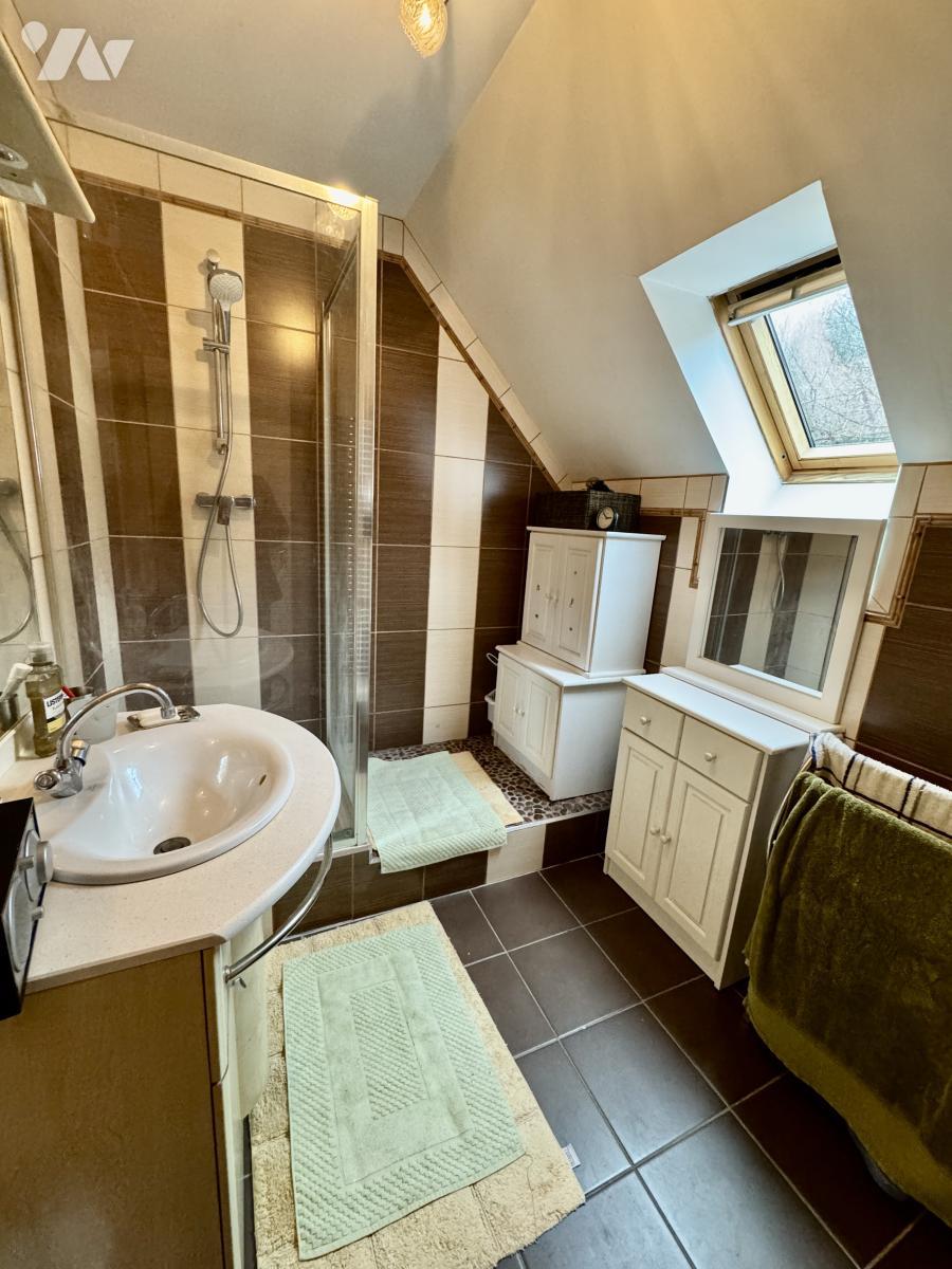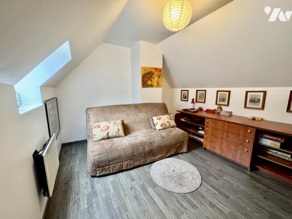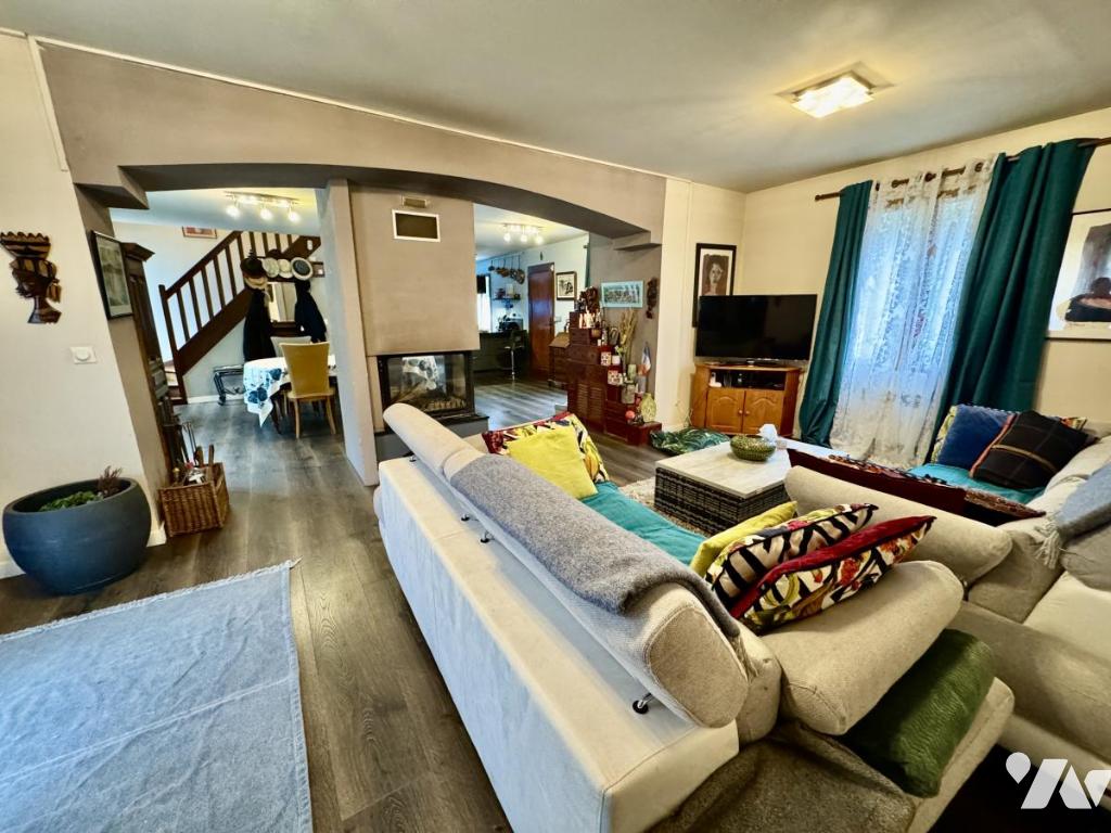 Cette maison édifiée sur un terrain de 896m², non mitoyenne, comprend 7 pièces, dont 6 chambres et 2 salles de bain. Le séjour, spacieux, fait 54 m² avec une jolie cheminée insert centrale.